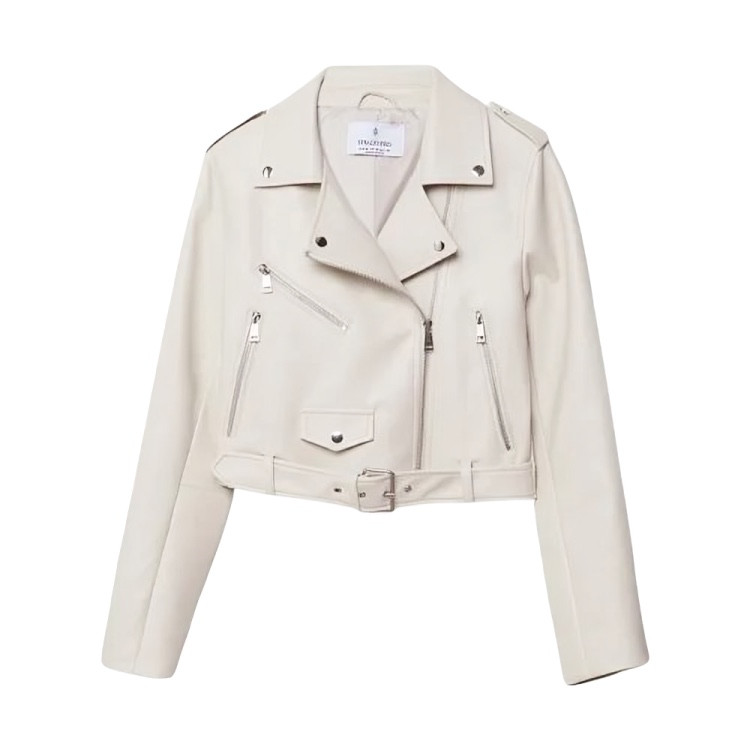 کت چرم زنانه استرادیواریوس مدل BIKER WITH BELT 2025