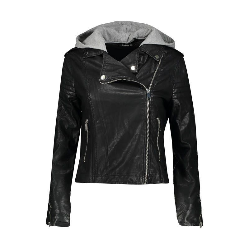 کت چرم زنانه استرادیواریوس مدل FAUX BIKER 2025