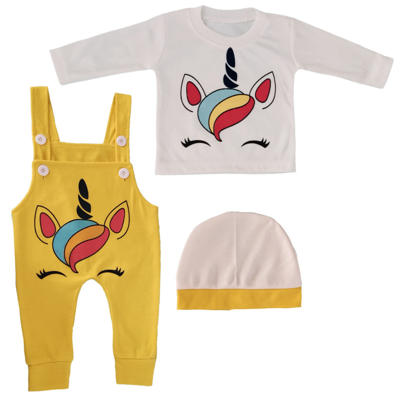 ست 3 تکه لباس نوزادی مدل اسب تک شاخ کد 15