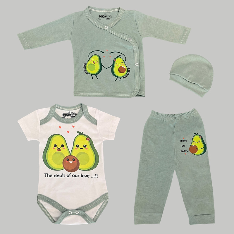 ست 4 تکه لباس نوزادی مدل آووکادو