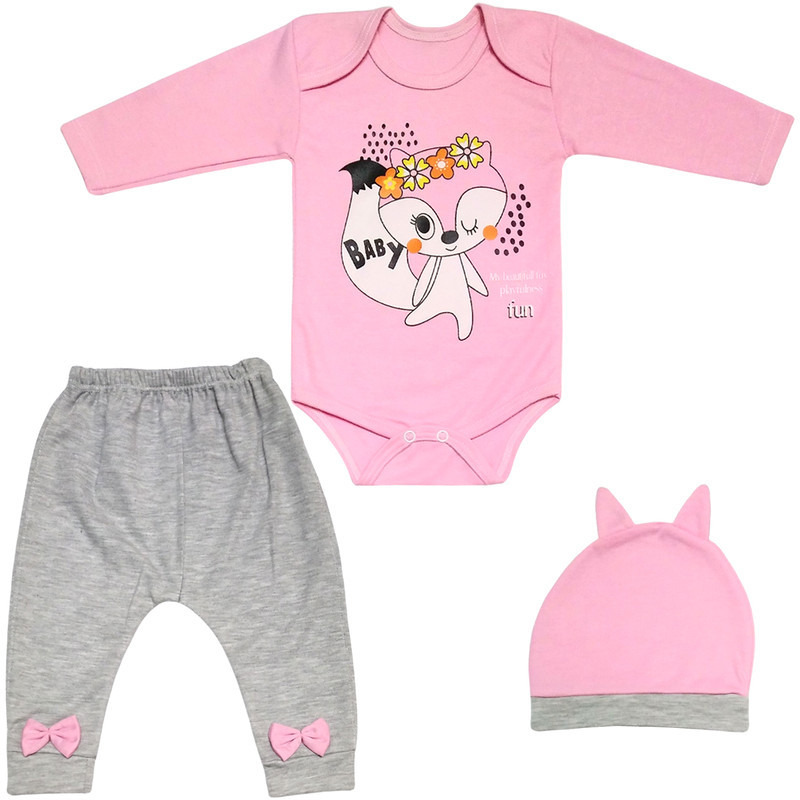 ست 3 تکه لباس نوزادی مدل روباه بازیگوش کد A04