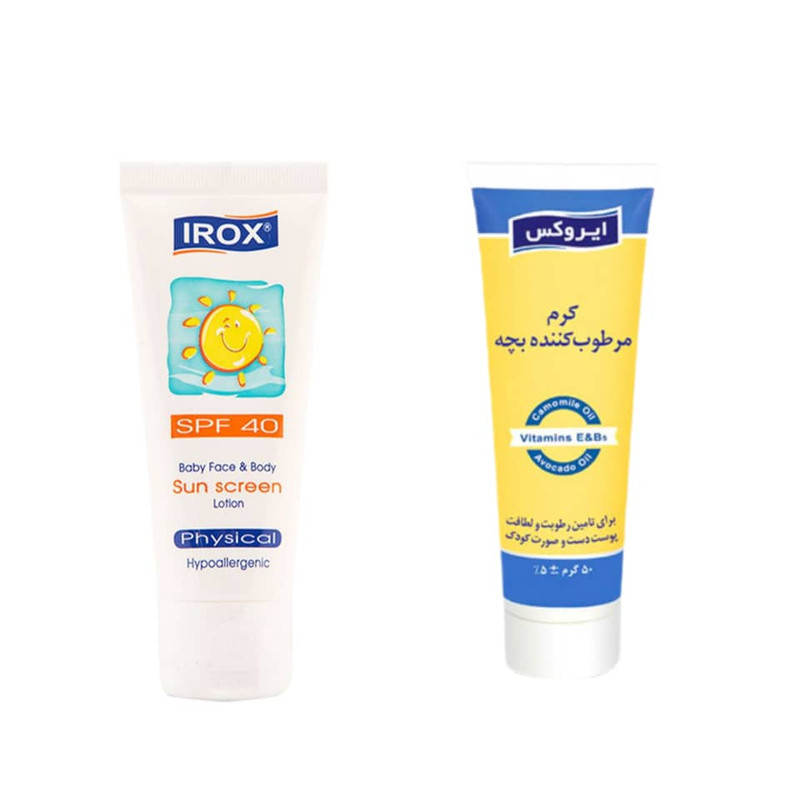 کرم مرطوب کننده کودک ایروکس مدل baby حجم 50 میلی لیتر به همراه کرم ضد آفتاب کودک ایروکس مدل baby حجم 50 میلی لیتر