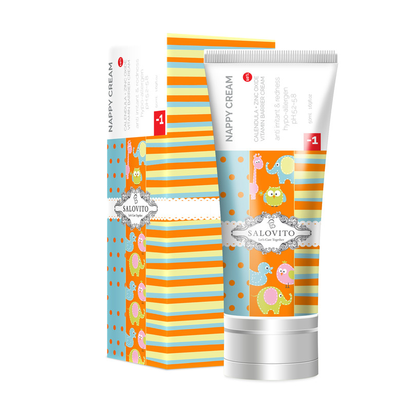 کرم پوشک نوزادان زیر یکسال (1-)سالوویتو براساس قوانین سخت گیرانه اتحادیه اروپا و FDA برای پوست بسیار حساس نوزاد طراحی شده است . اولین دغدغه تولید این محصول بر مینای حذف تمامی مواد شیمیائی آسیب رسان به سلامت نوزادان بوده است .این محصول بعنوان یک کرم ویتامین بریر با دارا بودن 10 درصد زینک اکساید و 10 درصد کالاندولا و ویتامین ب5،طی3مکانیزم محافظت از پوست (PROTECTING) ، بازسازی (RELIEVING) و نرم و لطیف کردن (SOFTENING) ،همراه با ایجاد یک لایه محافظ ویتامینی بر روی پوست ،سبب بازسازی و ترمیم لایهNMFپوست نوزاد ،رفع قرمزی و التهاب و خشکی و خارش پوست و در نهایت بکمک حفظ رطوبت پوست نوزاد،سبب جلوگیری از خارش و سوزش پوست و گریه نوزاد دلبند شما می گردد.این محصول با فرمولاسیونی پیشرفته ،یک کرم فوق هیپو آلرژن و ضد حساسیت محسوب میگردد و در دو رده سنی زیر یکسال و بالای یکسال طراحی شده است و فاقد تمام مواد مضر شیمیائی پارابن،فتالات،مواد صابونی،اسانس،وازلین،الکل آزاد،لانولین،اسید استئاریک،پلی اتیلن گلایکول و پروپیلن گلایکول میباشد.