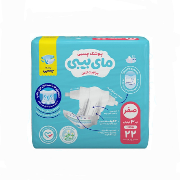 پوشک چسبی بچه مای بیبی مدل کانال دار سایز صفر مجموعه دو عددی