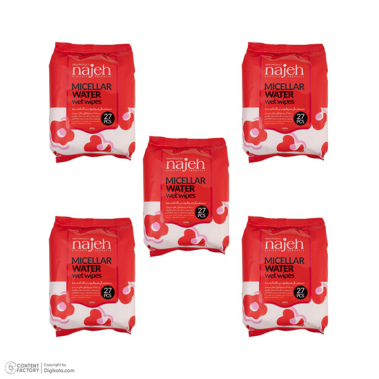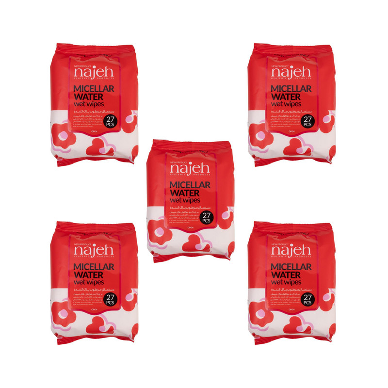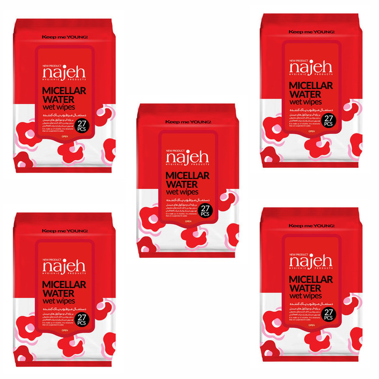 دستمال مرطوب ناژه مدل Micellar Water پنج بسته 27 عددی
