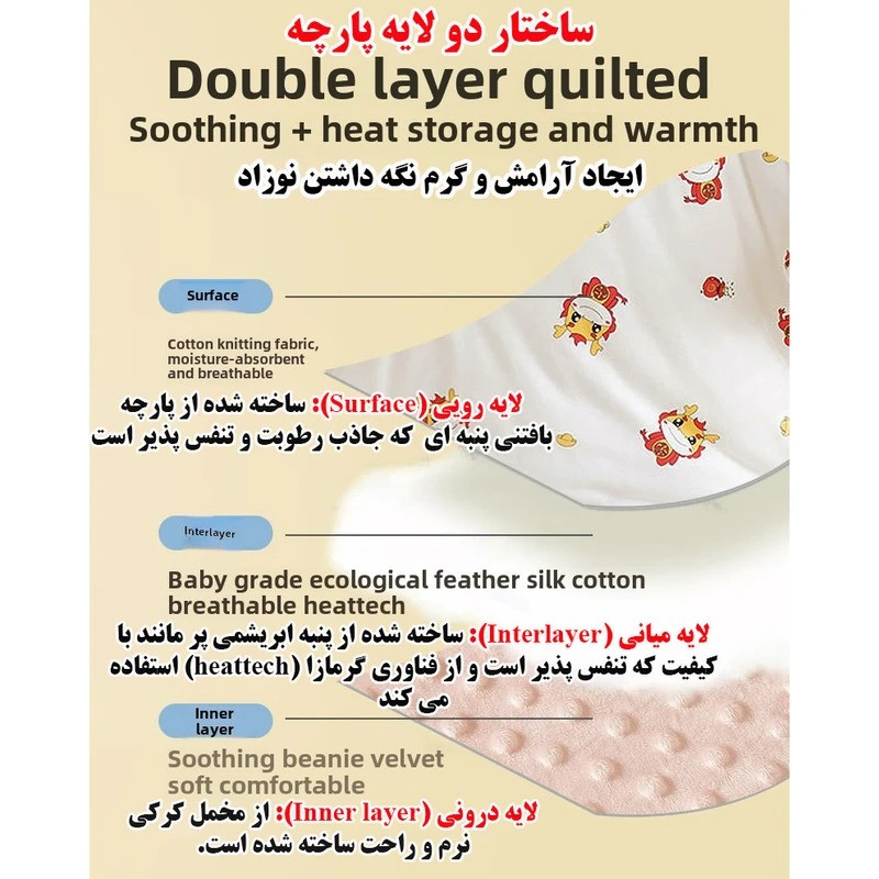 این حوله دورپیچ نوزاد با جنس ویسکوز، انتخابی عالی برای راحتی و محافظت از پوست حساس نوزاد شما است. با طراحی جذاب و دوستداشتنی خرگوشی، این حوله نه تنها ظاهری شاد و بامزه دارد، بلکه از نرمی و لطافت بینظیری برخوردار است. ویسکوز به کار رفته در این محصول، جذب رطوبت بالا و تنفسپذیری خوبی دارد، بهطوری که به سرعت پوست نوزاد را خشک کرده و احساس راحتی و آسایش را فراهم میکند. این حوله با قابلیت استفاده آسان و طراحی کاربردی، بهترین گزینه برای استفاده پس از استحمام یا هنگام خواب کودک است.