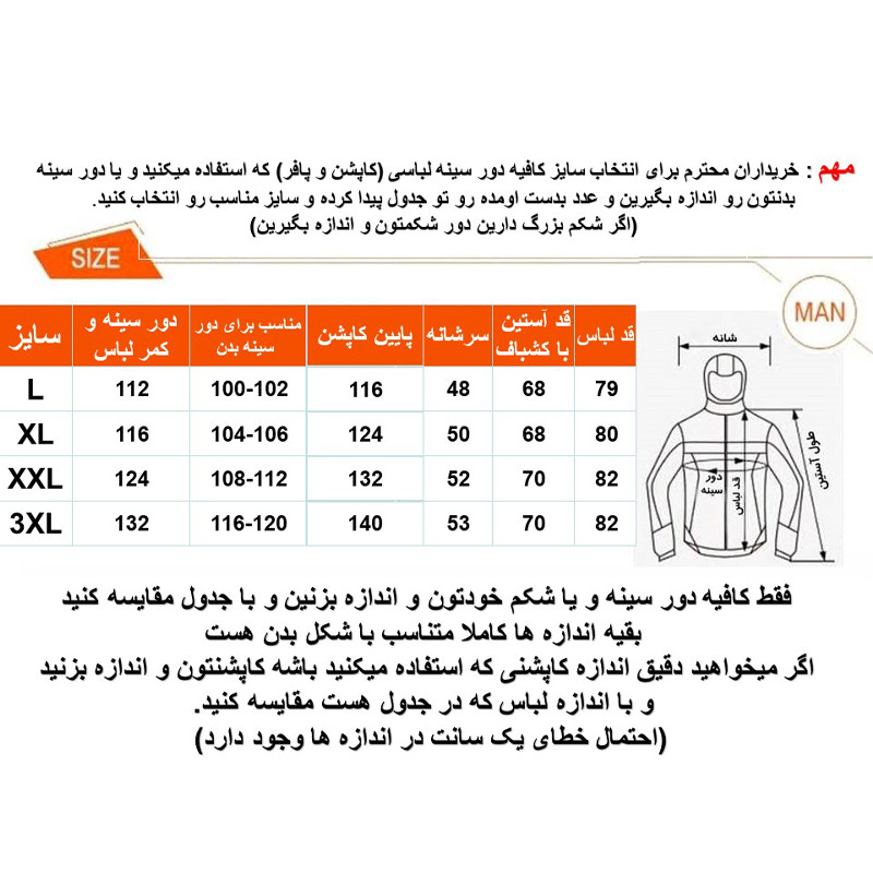 جنسکتانطرحسادهقدزیر باسنتنخور لباسمعمولی (regular fit)مدل یقهایستادهمورد استفادهمهمانی , روزمرهنوع کاپشن مردانهکاپشن کوتاه