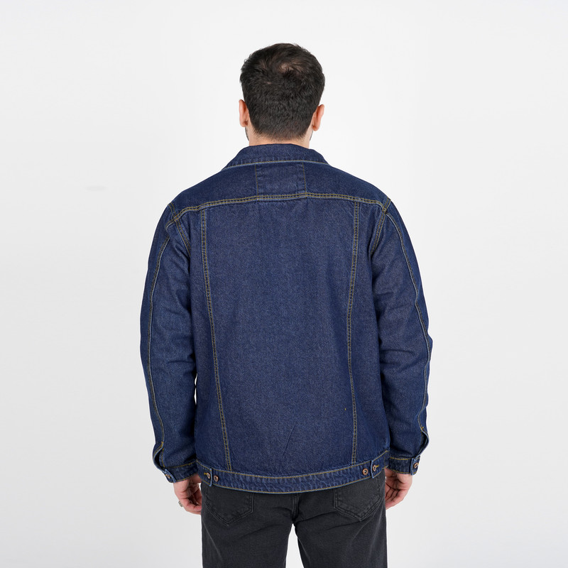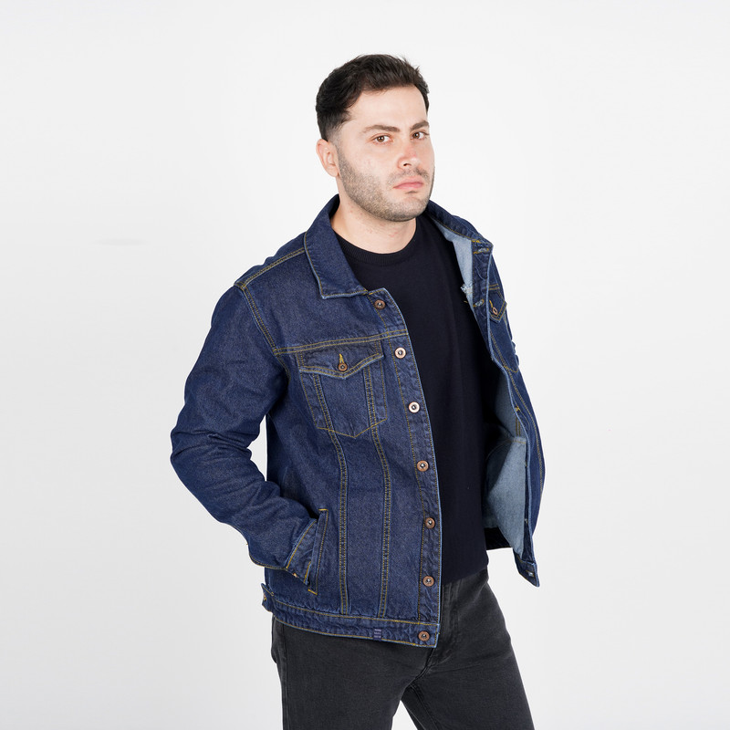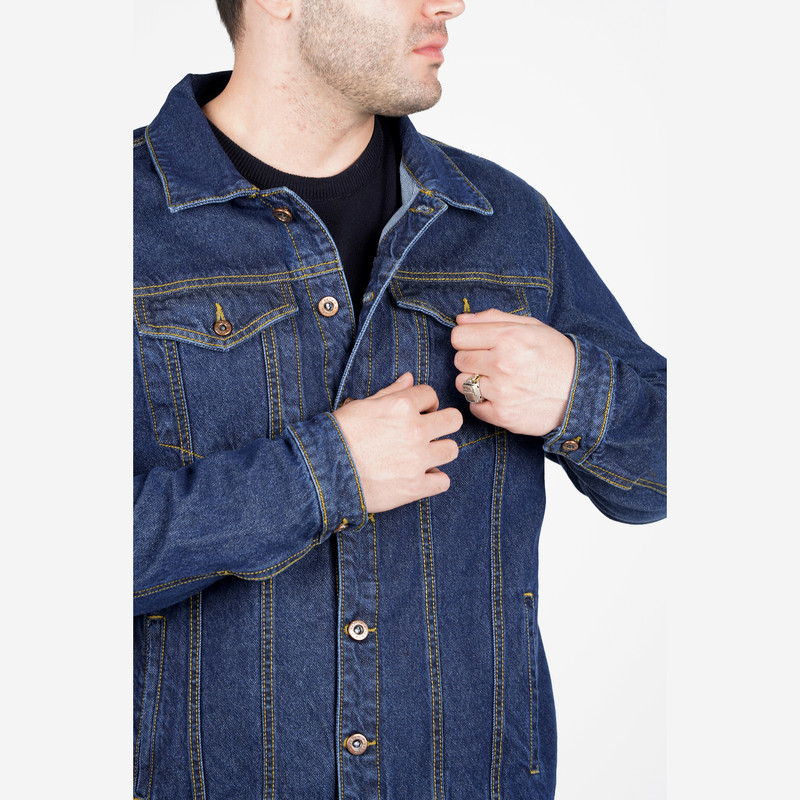 صد در صد کتان - جین - نسبتاً ضخیم / تمام دکمه فلزی / قد تا روی باسن / رنگ سرمه ای .