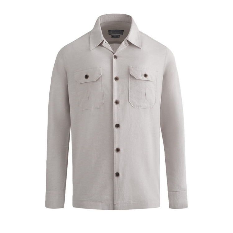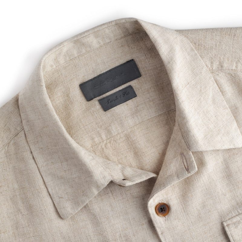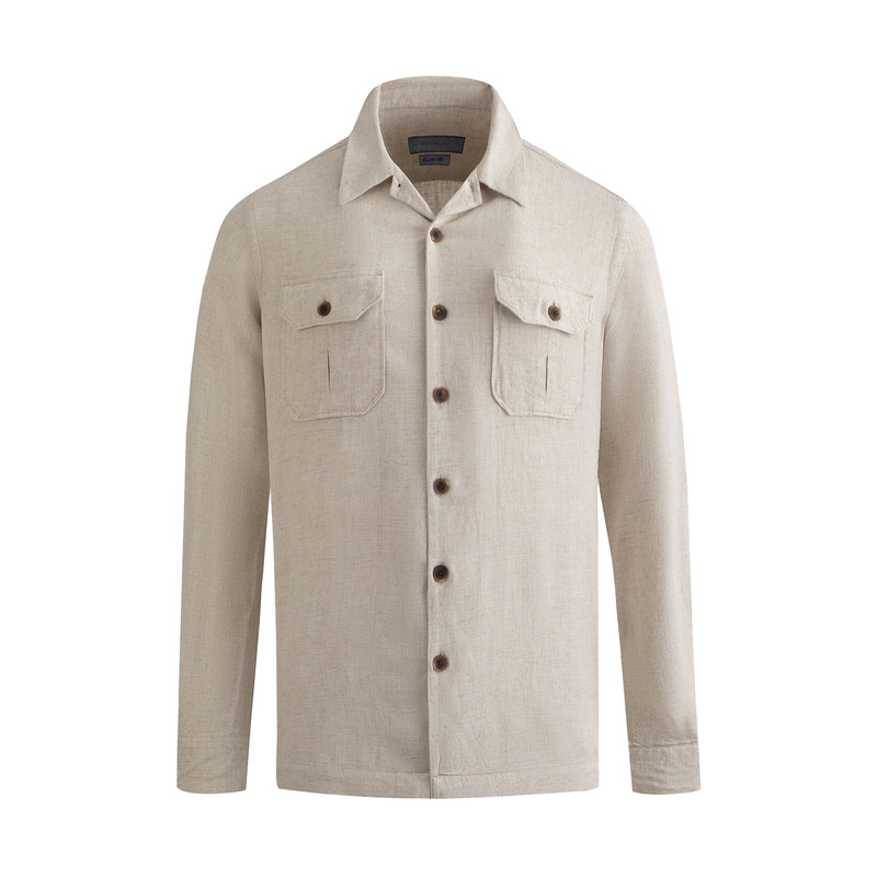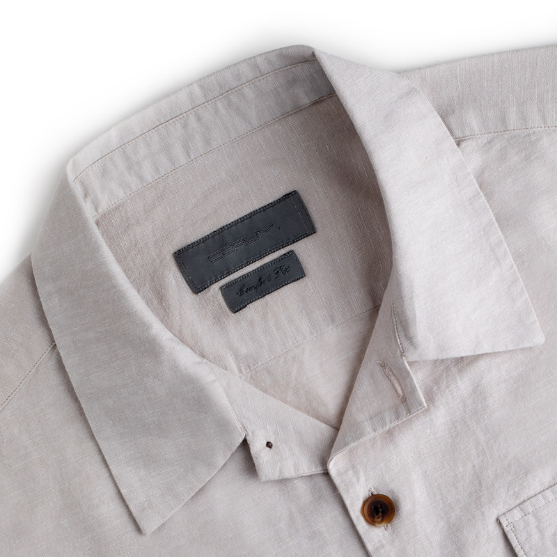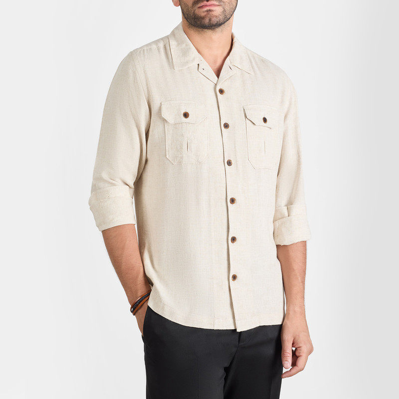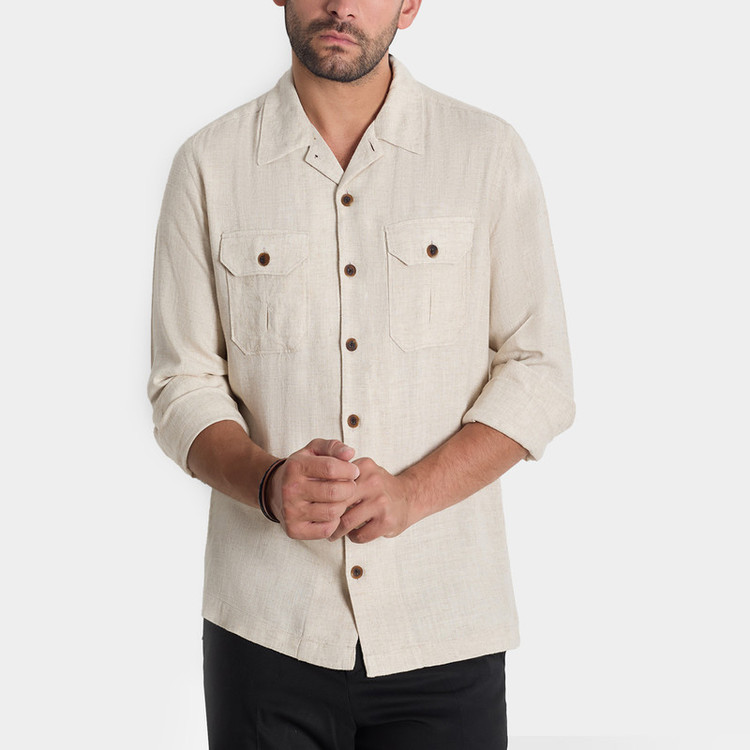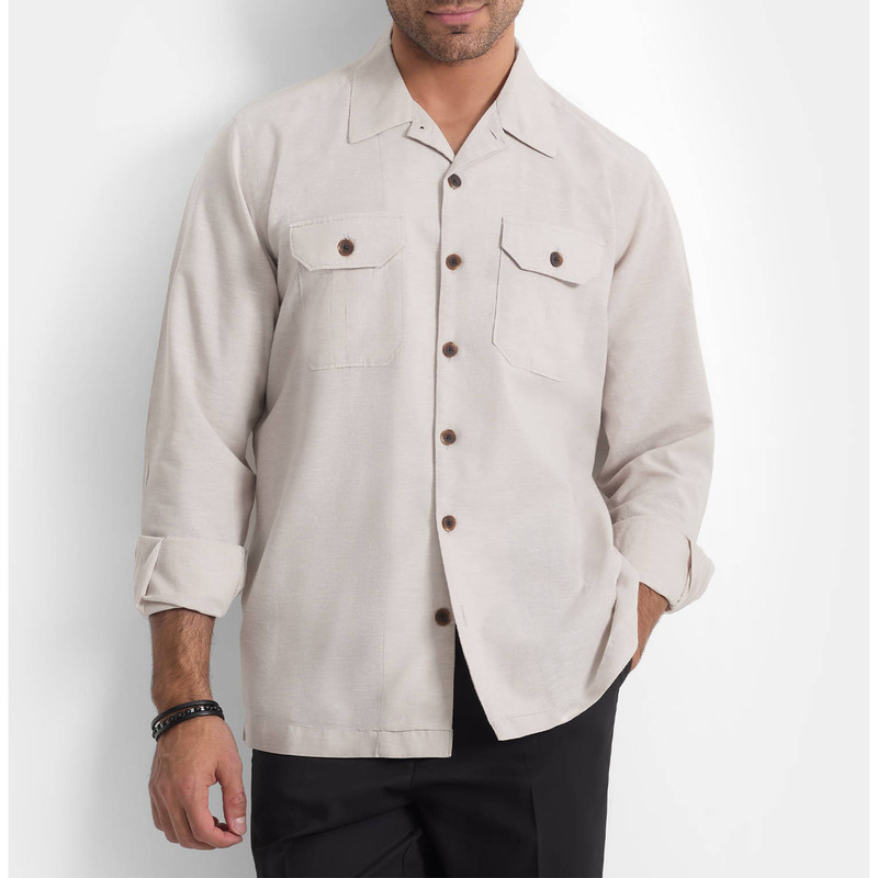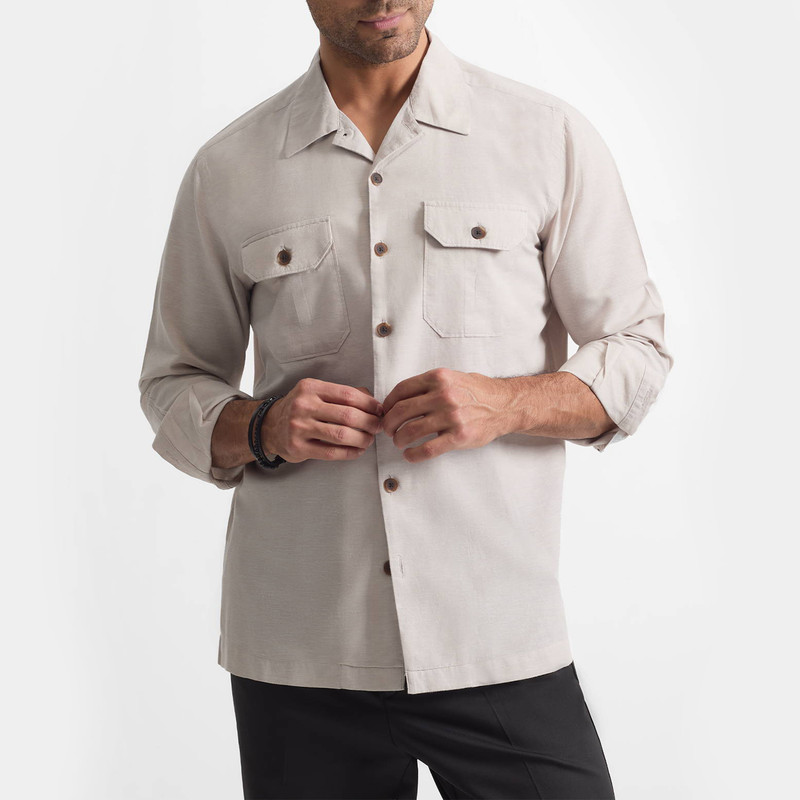 پیراهن مردانه آستین بلند پارچه ترکیبی از الیاف پنبه و لینن استایل Comfort-Fit دارای دو جیب روی سینه آستین تک دکمه خنک و سبک ثبات رنگ در شستشو