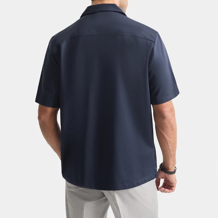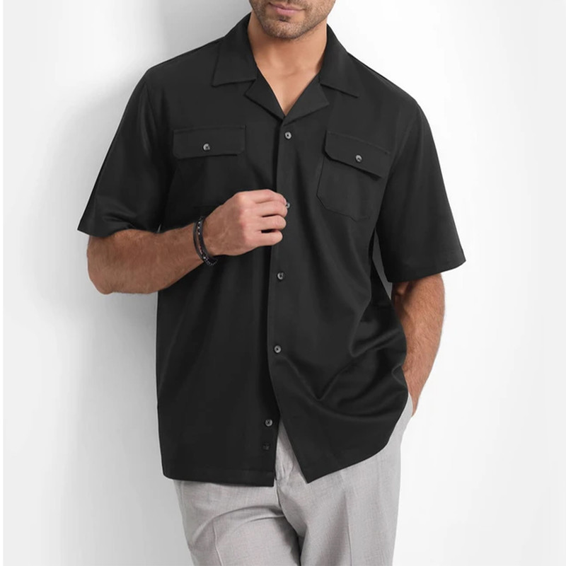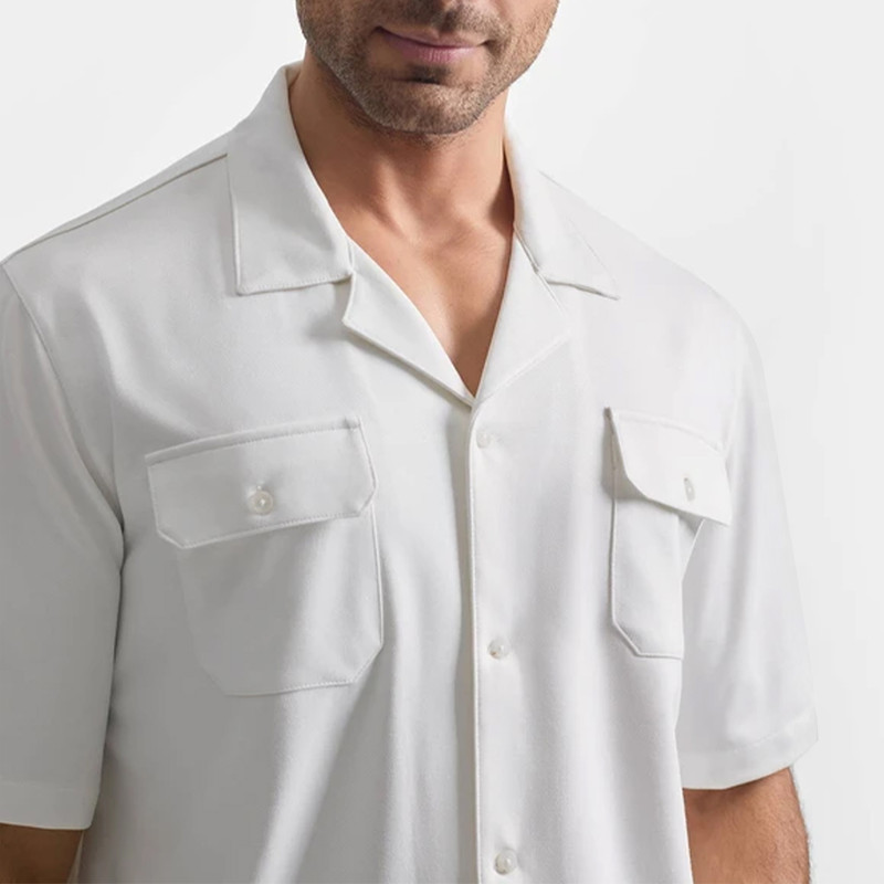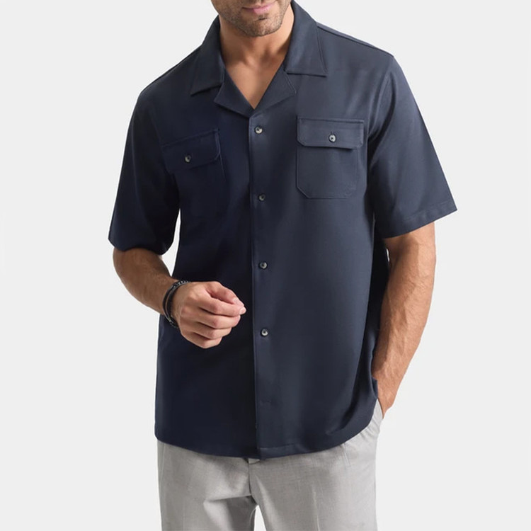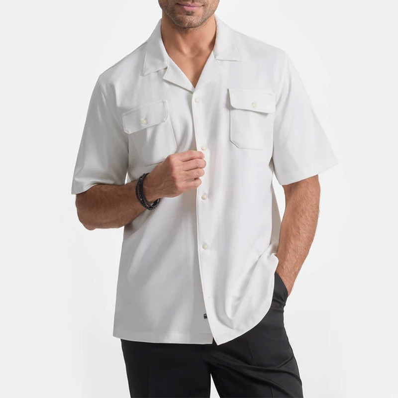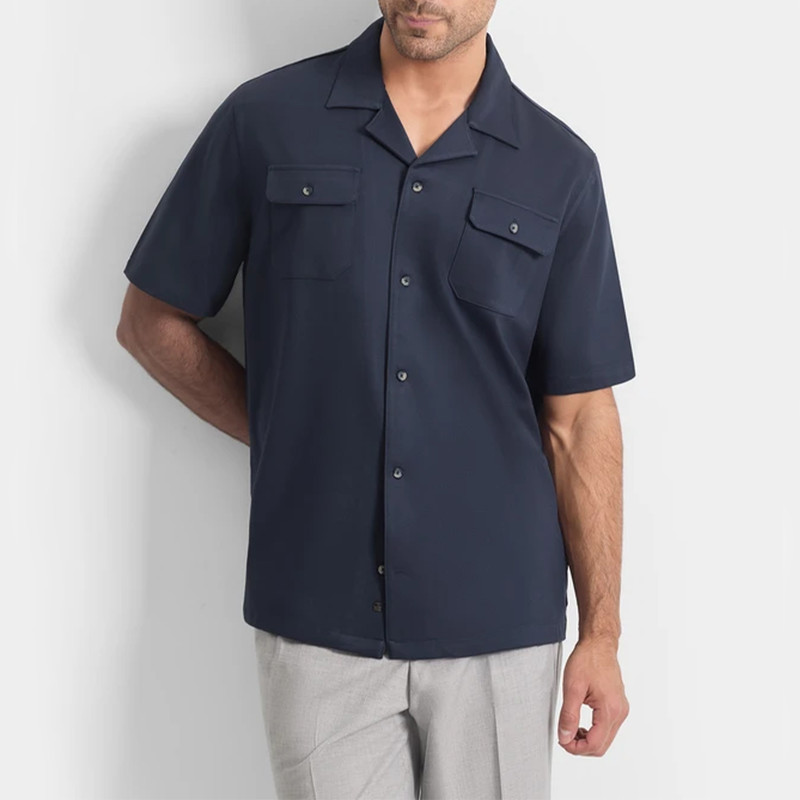 پیراهن مردانه آستین کوتاه استایل Comfort-Fit یقه انگلیسی دارای دو جیب روی پیش سینه دارای چاک در بغل ثبات رنگ در شستشو