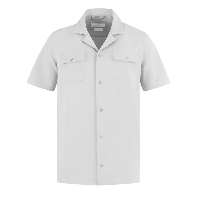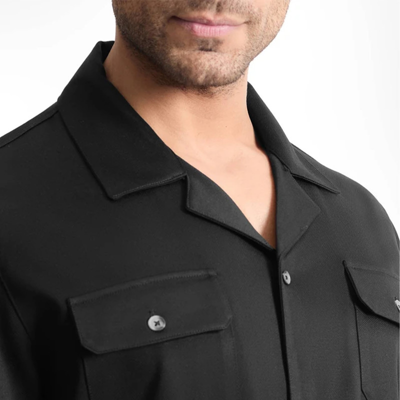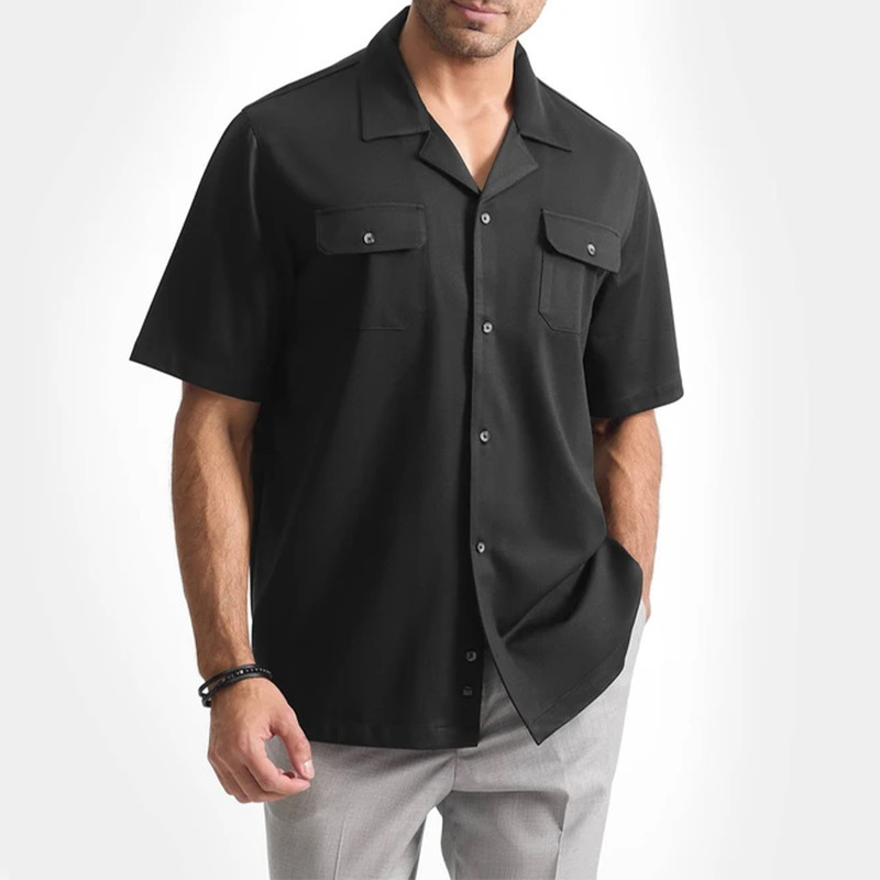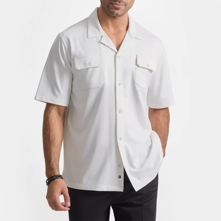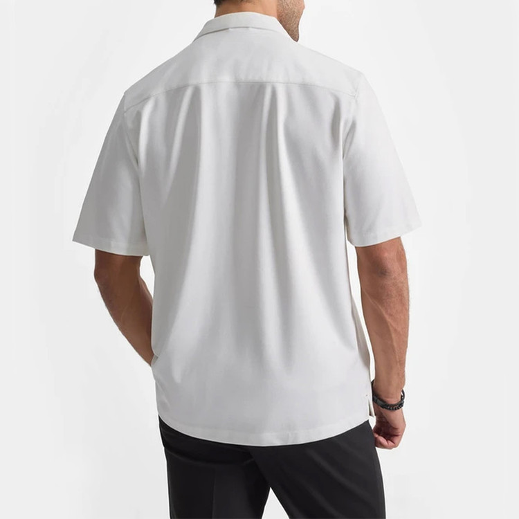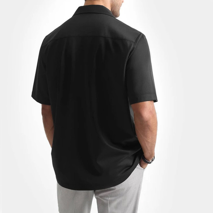 پیراهن مردانه آستین کوتاه استایل Comfort-Fit یقه انگلیسی دارای دو جیب روی پیش سینه دارای چاک در بغل ثبات رنگ در شستشو