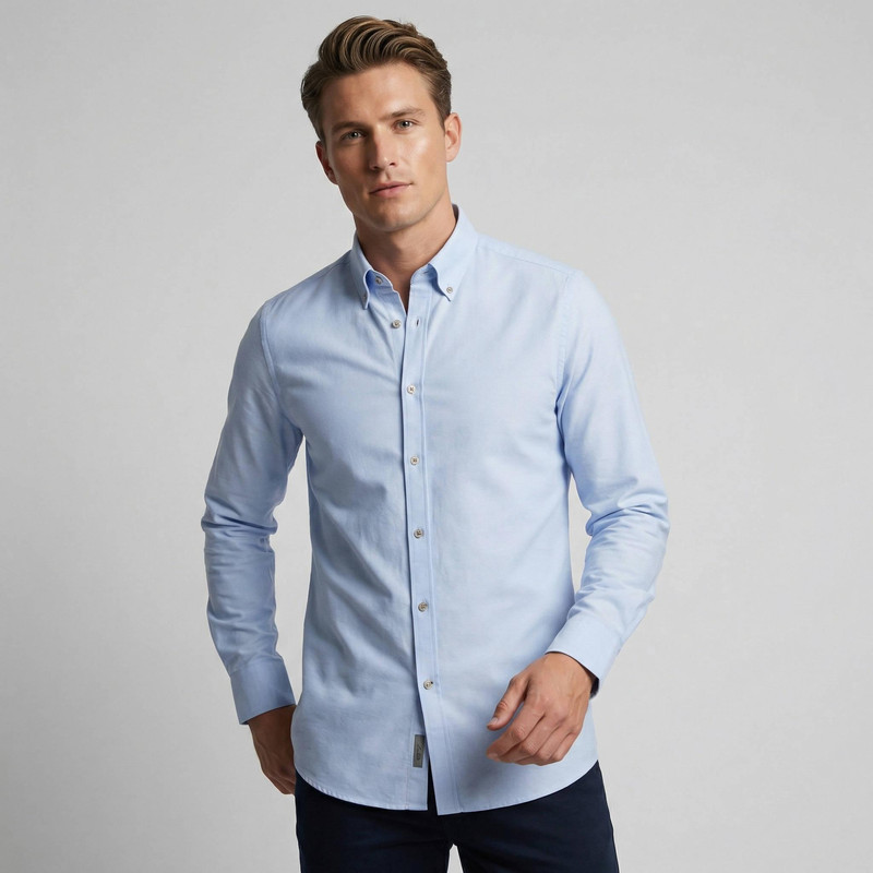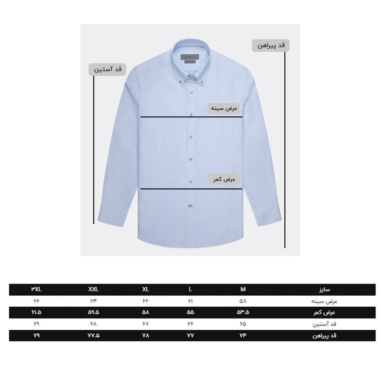 پیراهن مردانه آستین بلند پارچه تهیه شده از 100% الیاف پنبه استایل Comfort-Fit یقه دکمه دار آستین دو دکمه ثبات رنگ در شستشو