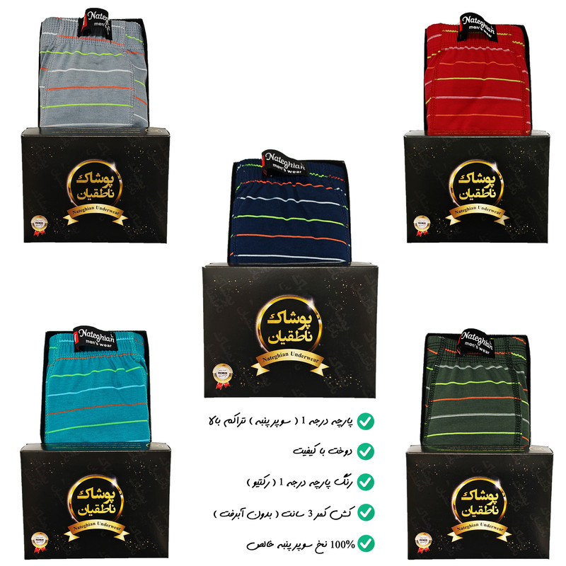 شورت پادار مردانه پوشاک ناطقیان مدل سوپر نخ پنبه کد 22 مجموعه 5 عددی