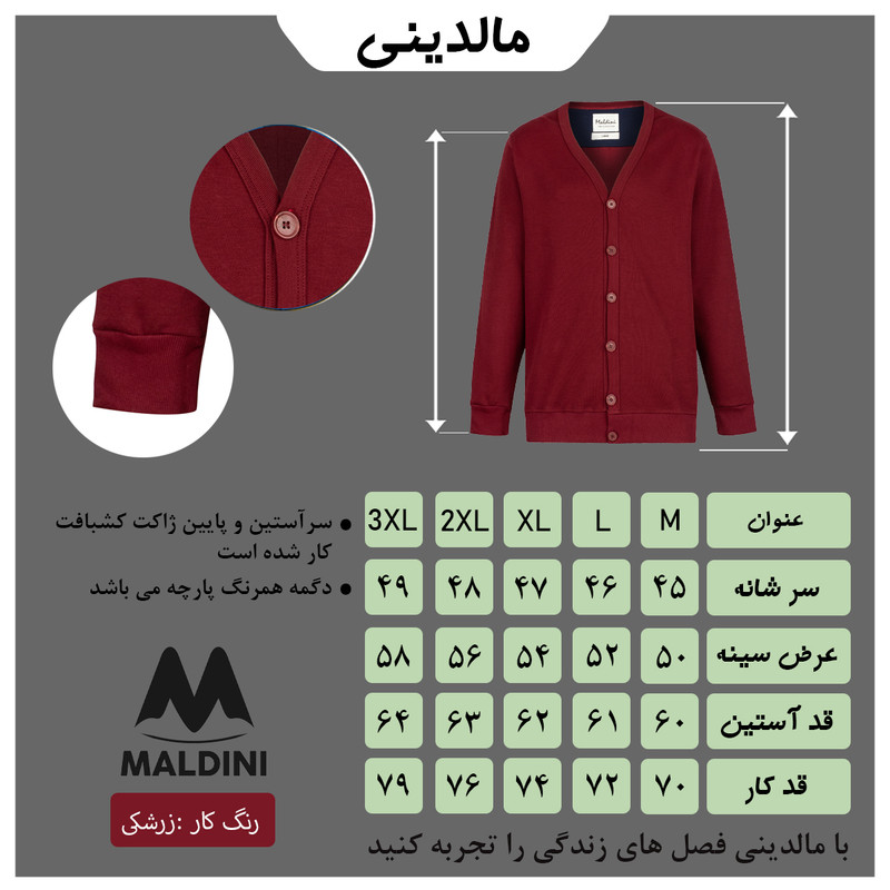 ژاکت مردانه مالدینی از جنس تمام پنبه می باشد که ضد حساسیت و بدون نخ کش شدن می باشد . دوخت این محصول صنعتی بوده که با حساسیت و پیشرفته ترین دستگاه های خیاطی دوخته شده و کاری تمیز و با کیفیت را در اختیار شما قرار می دهد