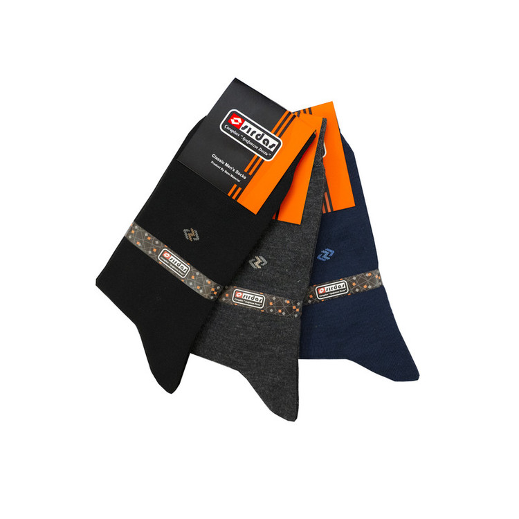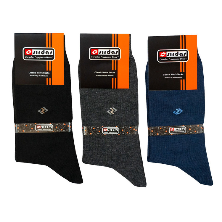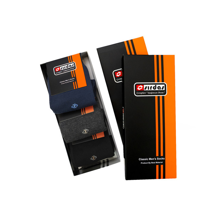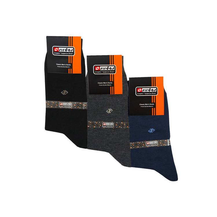 3 جفت جوراب مردانه سیرداش با طرح یکسان و در 3 رنگ مختلف داخل جعبه مقوایی 3 عددی وجود دارد