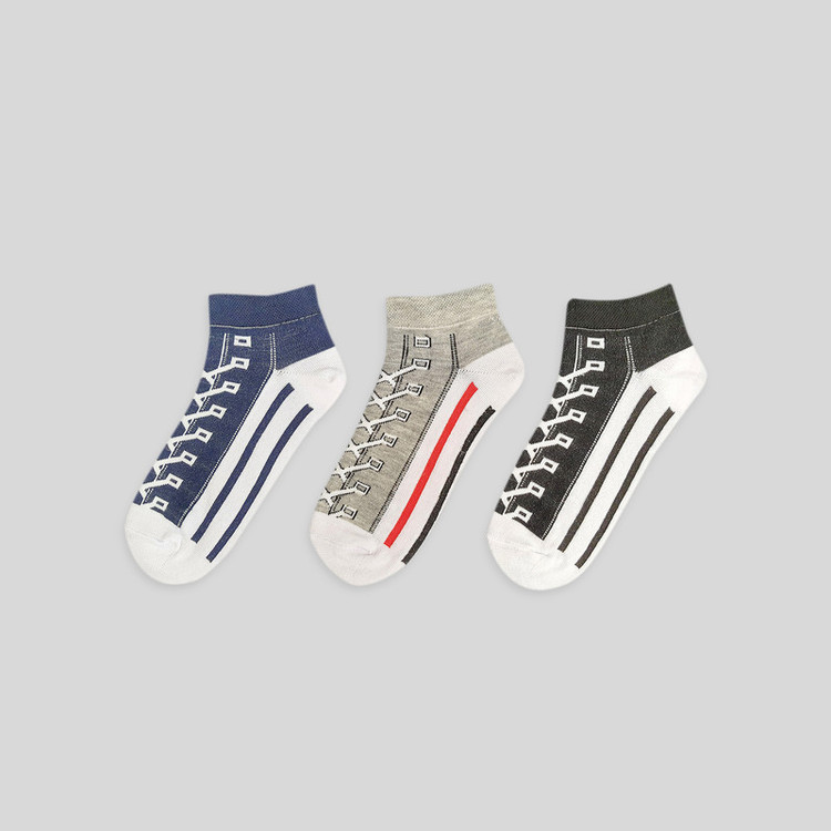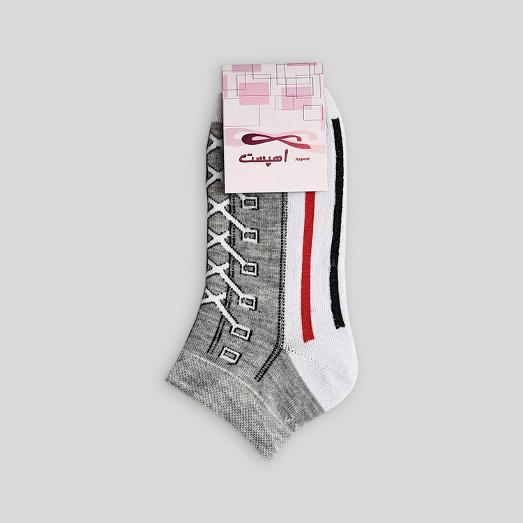 بسته 3 عددی جوراب ساق کوتاه نخی طرح کفش بند دار