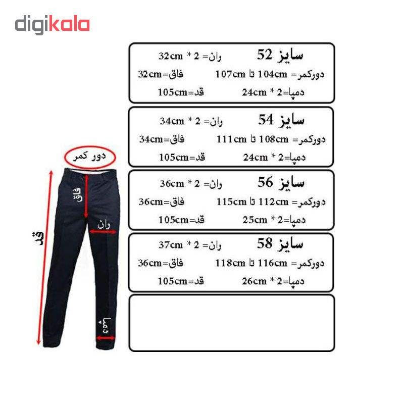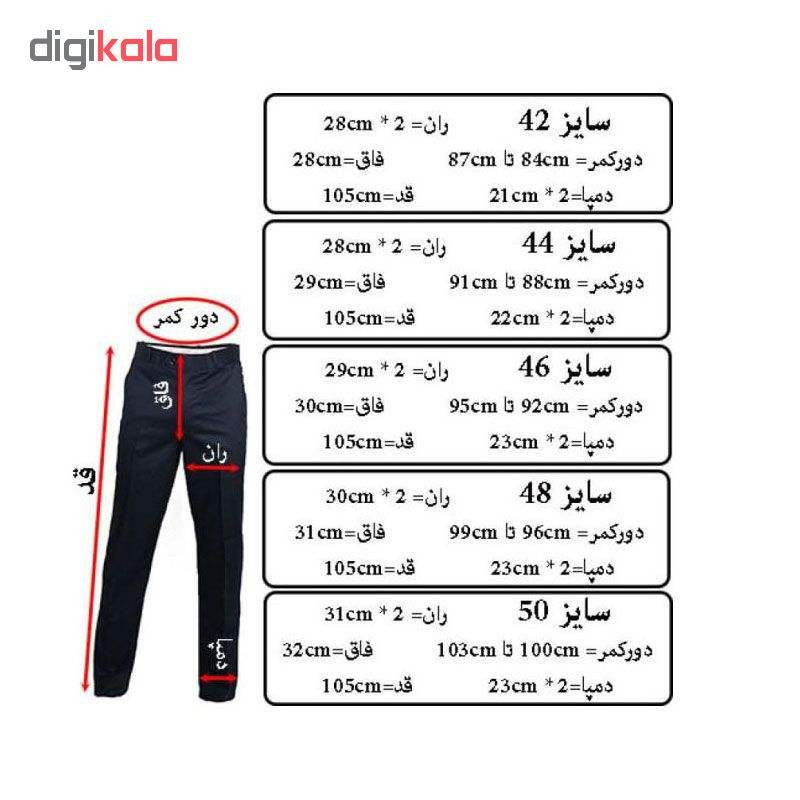 - شلوار پارچه ای مردانه - مدل کلاسیک - جنس پارچه فیلا فیلا - دوخت با کیفیت ایرانی - یک جیب در پشت شلوار - دو جیب در جلو - نحوه بسته شدن با زیپ و دکمه و قزن - پنل (پل) کمربند 5 عدد - همراه نوار زانفیکس - رنگ سرمه ای