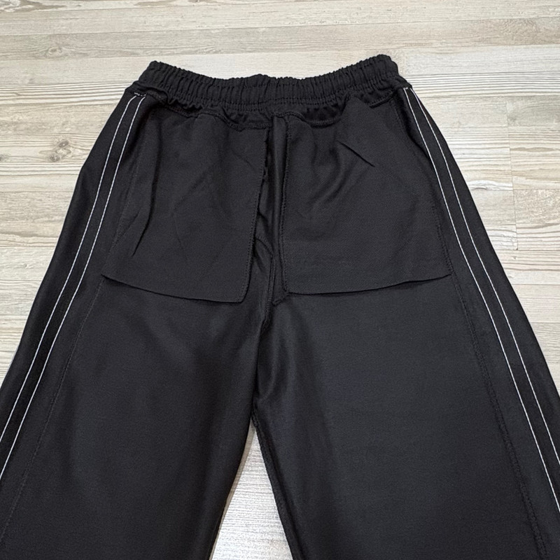 شلوار راحتی مدل بگ 3 جیب.2 جیب مورب در بغل شلوار و 1 جیب در پشت شلوار دارد.دو خط نواری سفید رنگ در بغل شلوار دوخته شده.کمر شلوار کشی با بند قابل تنظیم می باشد .تن خور و ظاهر زیبایی دارد و پارچه این مدل شلوار نرم و راحت است.