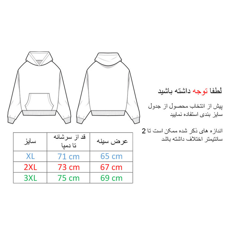 جنس هودی دورس پنبه تو کرکی لطیف میباشد و از کیفیت مطلوبی برخوردار است سر آستین و دمپا هودی کشبافت است