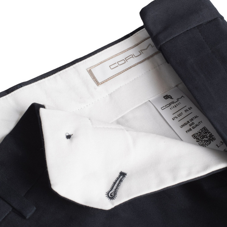 شلوار کتان، پیش کار دو دکمه، دارای 3% الاستین جهت راحتی بیشتر، دارای بند کمر جهت استفاده از کمربند،استایل Comfort-Fit