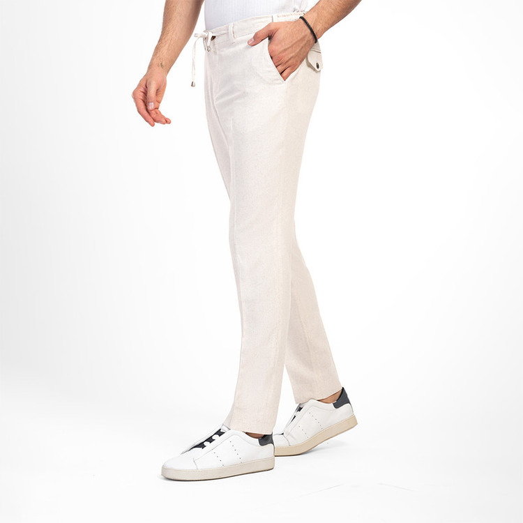 طرح پارچه ساده/جنس پارچه لینن/استایل اسلیم/دارای دو جیب جلو و دو جیب پشت/کمر کش بند دار/کد محصول 2/153