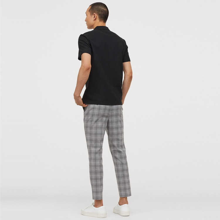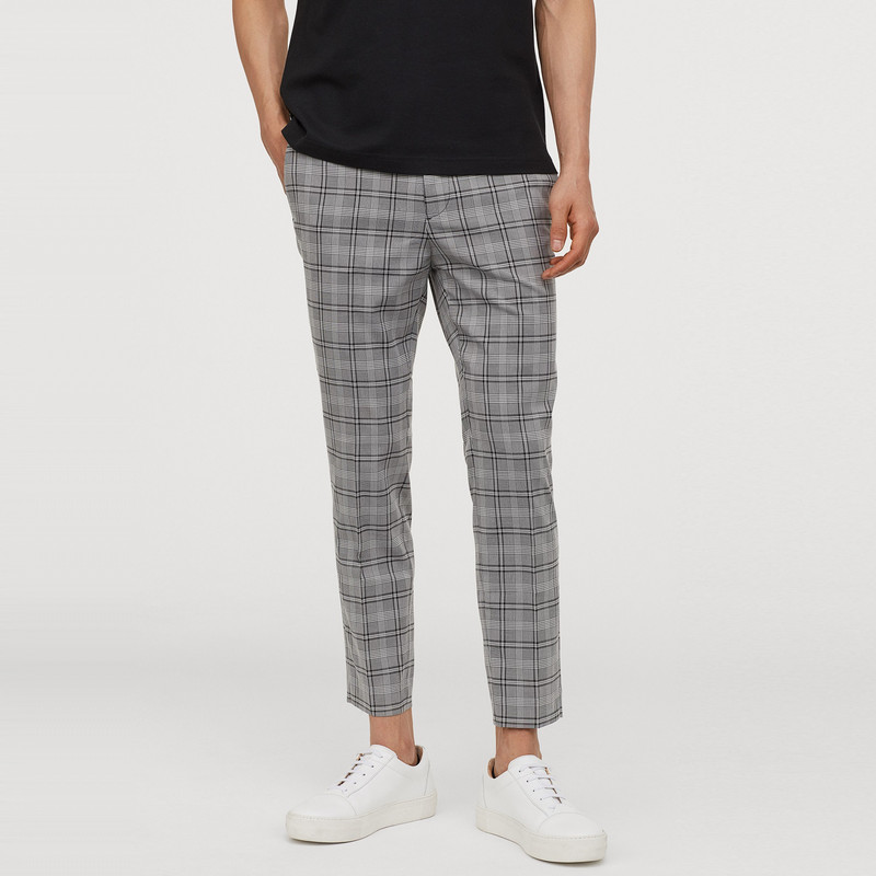 شلوار پارچه ای مردانه قد تا مچ پا از پارچه بافته شده با بست مخفی قلاب و زیپ. دارای جیب های کناری و جیب های پشتی با دکمه تناسب با پاهای کمی کوتاهتر که به رانها، زانوها و مچ پا نزدیک میشود تا یک استایل کاملاً متناسب ایجاد کند.