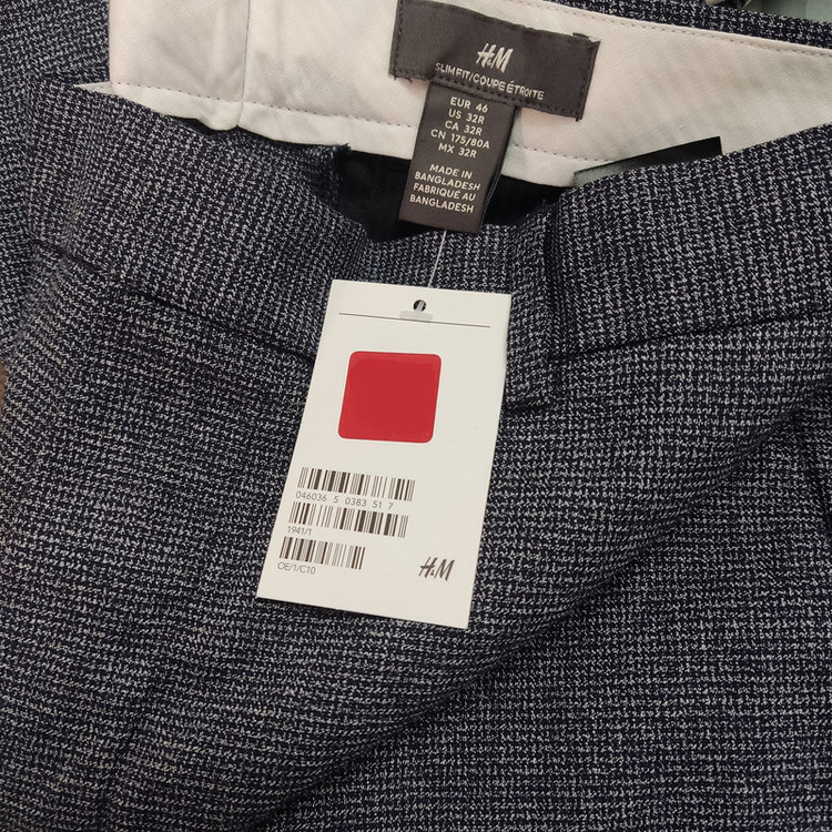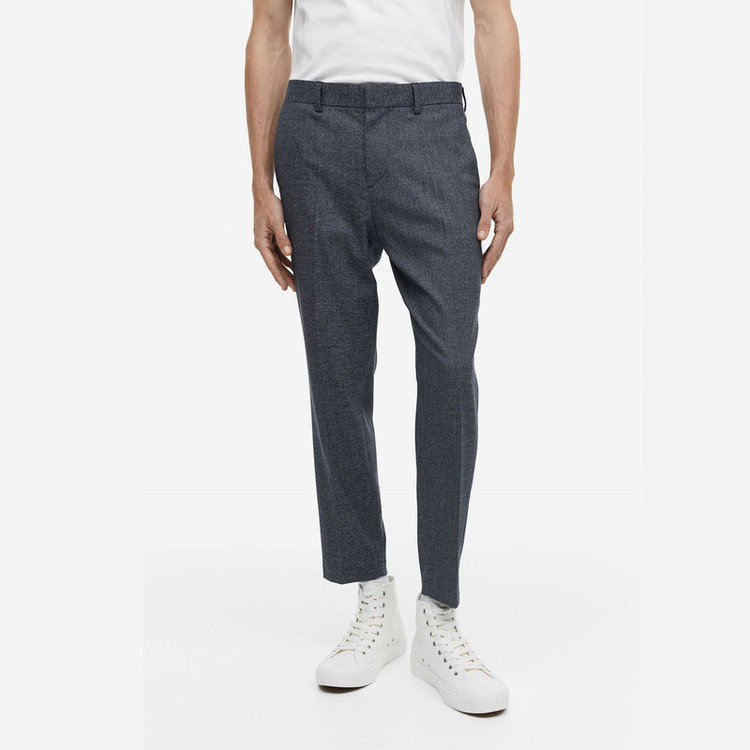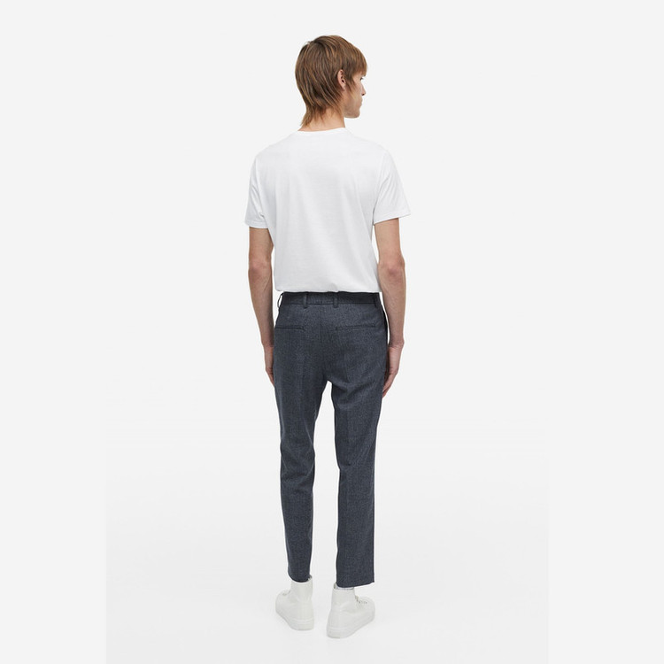 شلوار پارچه ای مردانه با زیپ که دارای قلاب و دکمه پنهان است. تناسب باریک با جیبهای کناری، جیبهای پشتی