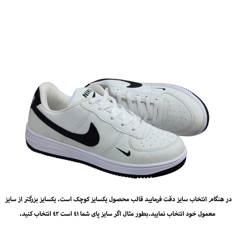 کفش مخصوص پیاده روی مردانه و زنانه مدل Air رنگ سفید نوار مشکی مناسب برای پیاده روی ها و ایستادن های طولانی مدت می باشد. در ساخت رویه این محصول از چرم صنعتی اعلا خارجی ، آستر و کفی داخلی آن پارچه سه بعدی تنفس پذیر استفاده شده است تا هر دو گزینه گردش هوا درون کفش(عدم تعرق پا درون کفش) و مقاومت بالا را داشته باشد. زیره طبی محصول از جنس پلی یورتان با مواد اولیه ایتالیایی بوده که با فناوری تزریق مستقیم به رویه محصول متصل است. استفاده از فناوری تزریق مستقیم موجب یکپارچگی زیره و رویه محصول شده و جدا شدن آنها از یکدیگر را در کوتاه مدت غیر ممکن کرده است. زیبایی،سبکی،طراحی طبی،مقاومت بالا و کیفیت ساخت بالا این مدل را به گزینه ای مناسب برای همه سلیقه ها تبدیل کرده است.