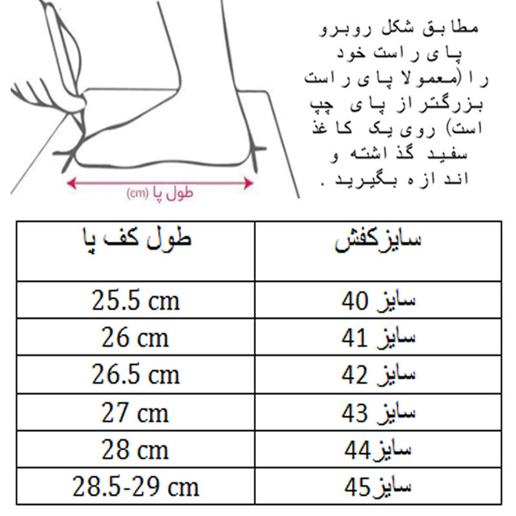 لطفا به جدول سایزبندی در عکسهای محصول توجه نمایید.
