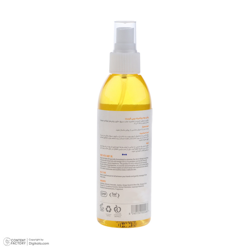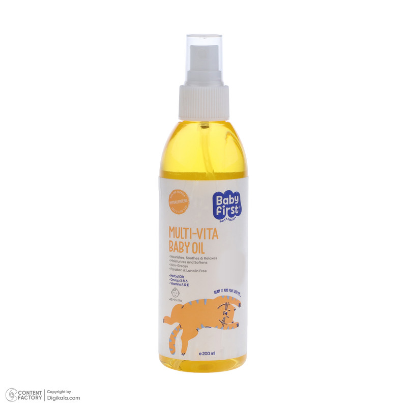 قبل از استفاده روغن ویتامینه بیبی فرست، ابتدا تست حساسیت آن را روی پوست داخل بازوی کودک انجام دهید و در صورت عدم مشاهده علائم حساسیت بعد از 24 ساعت، مقدار مناسبی از محصول را روی تمام بدن کودک به آرامی ماساژ داده تا جذب گردد.
