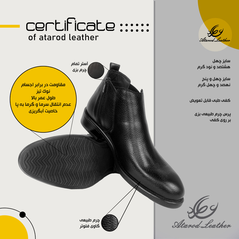 نگهداری: با توجه به تمام چرم طبیعی بودن محصول میتوانید از واکس بی رنگ جهت نگهداری بهتر از کفش چرم طبیعی برند چرم عطارد استفاده کنید.