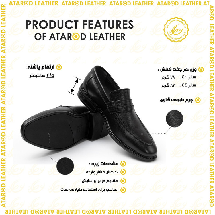 رویه کفش چرم طبیعی لوکس گاوی برند ثبت شده عطارد آستر داخل کفش چرم طبیعی بزی لوکس زیره لوکس پاشنه تا پنجه ، بیرون و داخل تمام چرم طبیعی چرم عطارد لطفا توجه داشته باشید قالب این کفش تُرک و بزرگ پا میباشد و حتما براساس جدول سایز بندی سفارش دهید