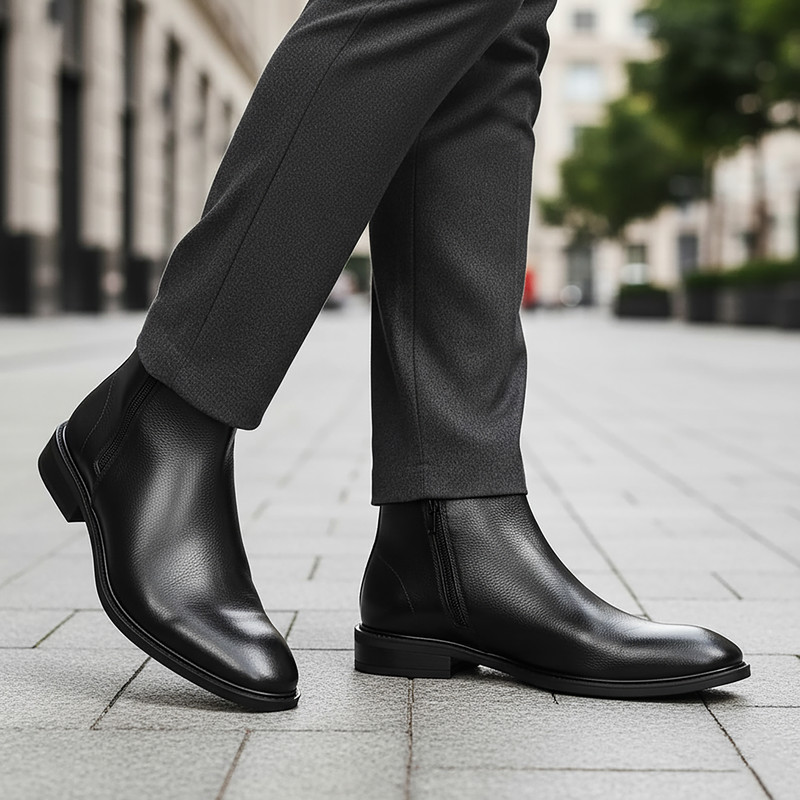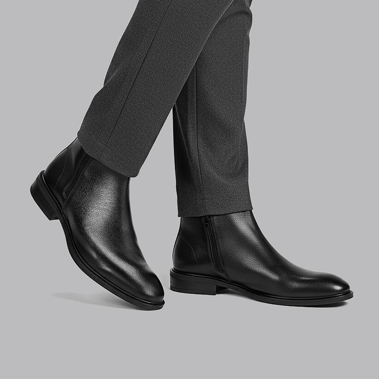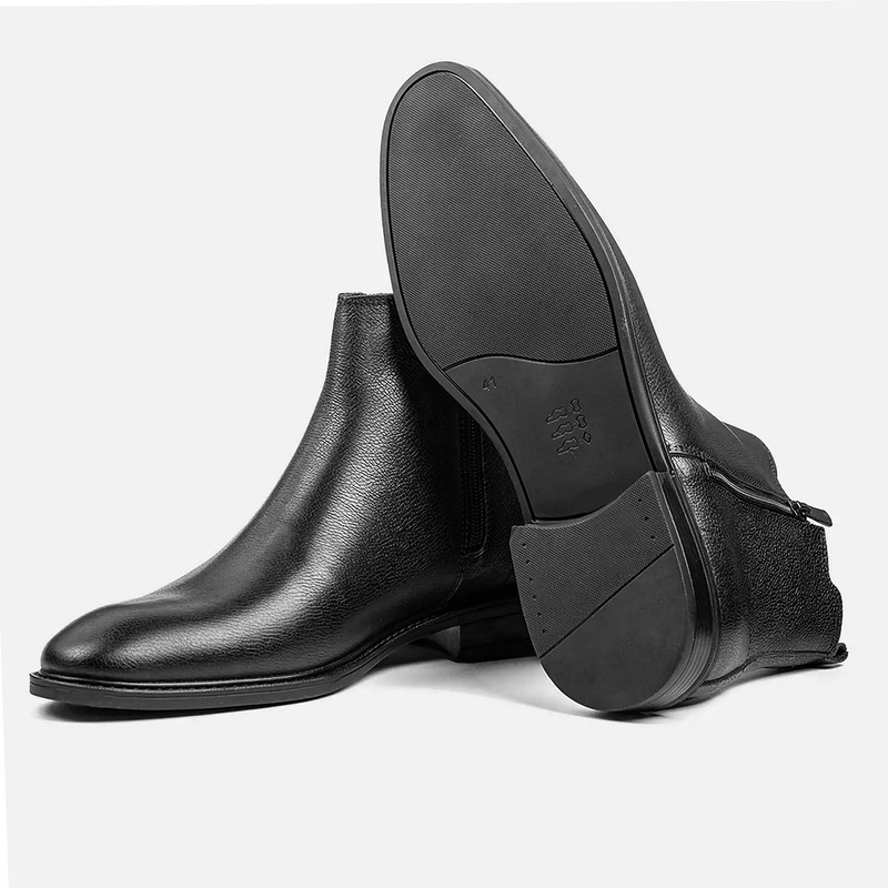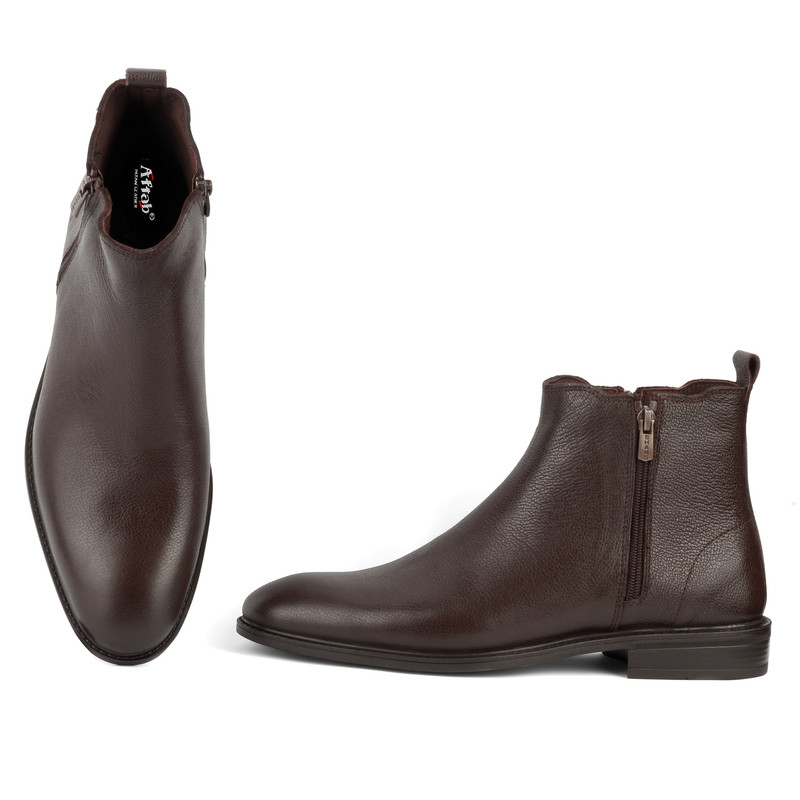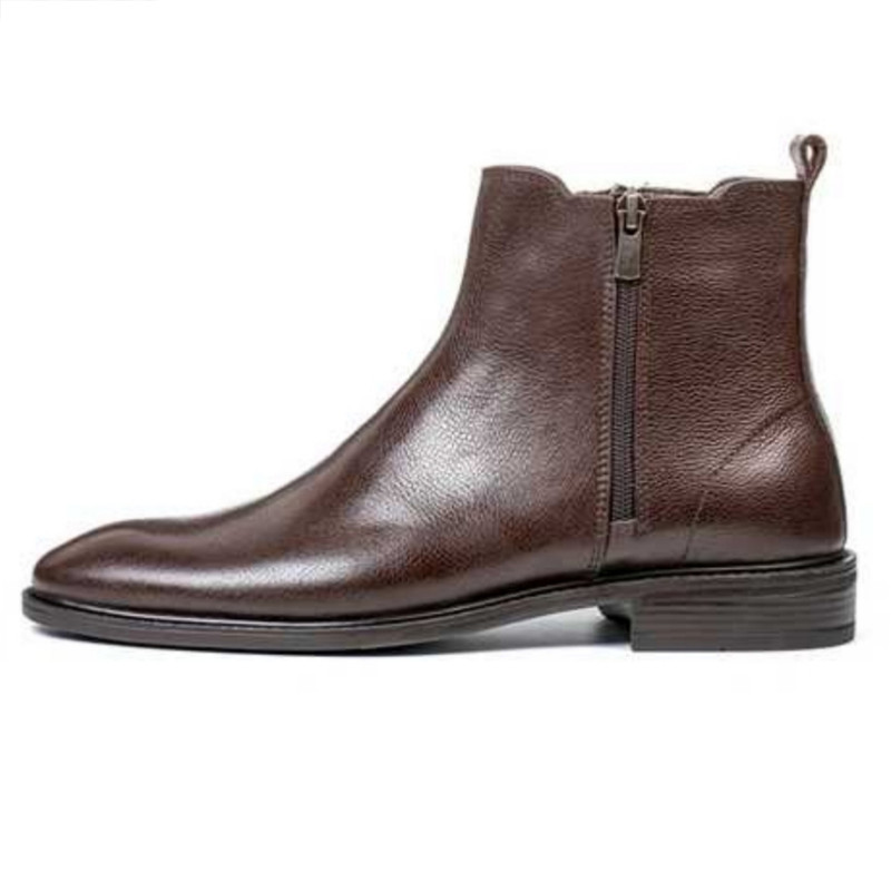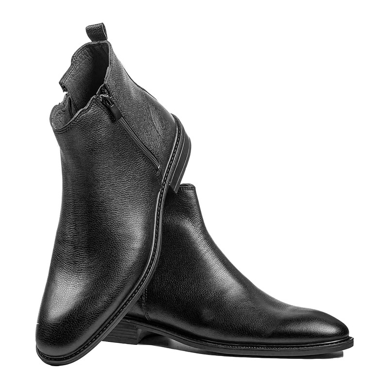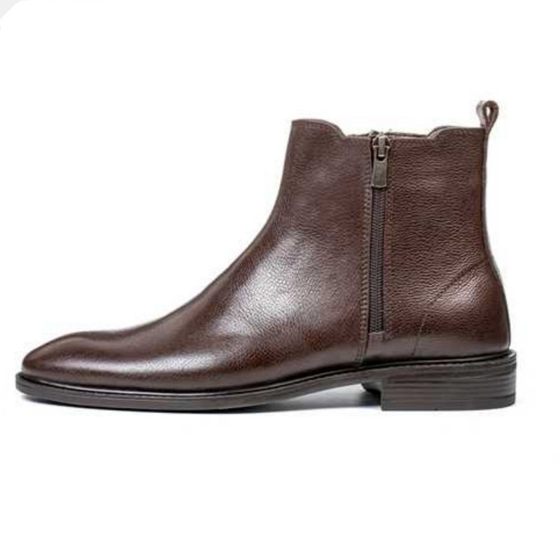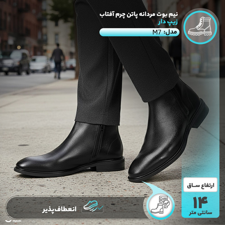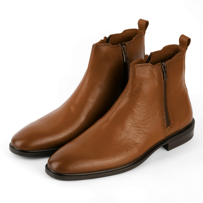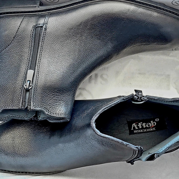 جنس رویه: چرم طبیعی گاوی جنس زیره: لاستیک – مقاوم در برابر سایش و منعطف جنس کفی: چرم طبیعی بُزی (ضد ترک) وزن تک لنگه: 455 گرم ( 25± ) این کفش دارای زیپ در کناره داخلی و خارجی است.