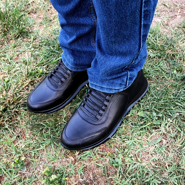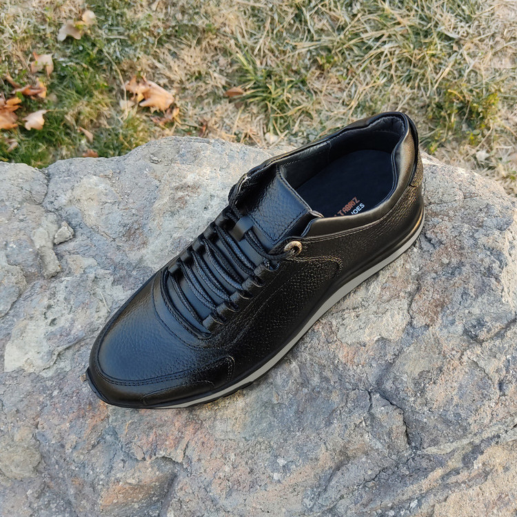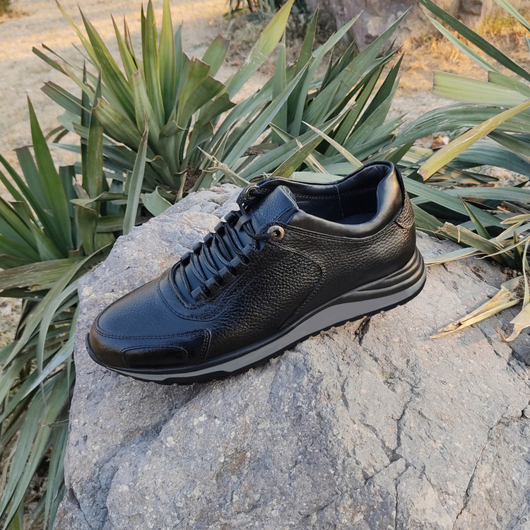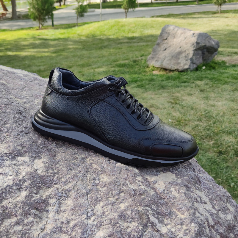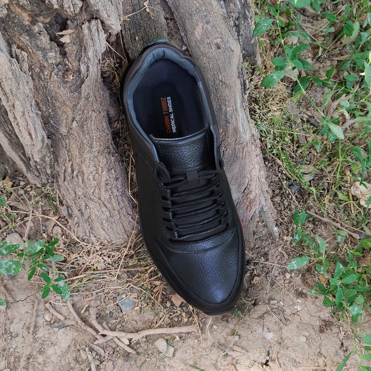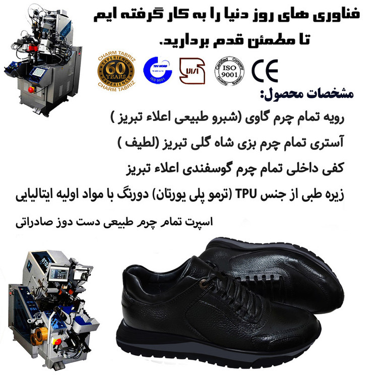 تهیه شده از مرغوب ترین چرم طبیعی (تمام چرم) رویه، آستر و کفی چرم طبیعی زیره طبی از جنس ترمو پلی یورتان دو رنگ با مواد اولیه ایتالیایی تمام دستدوز