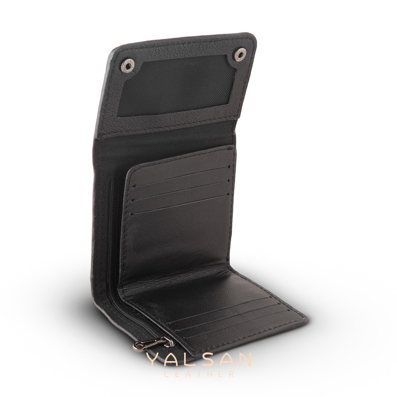 تمام چرم طبیعی 1 عدد فضای جیبی زیپ دار برای محافظت بیشتر برخی از ملزومات 1 عدد فضای جیبی برای نگهداری اسکناس 7 عدد فضای مرتبط با تفکیک کارتها