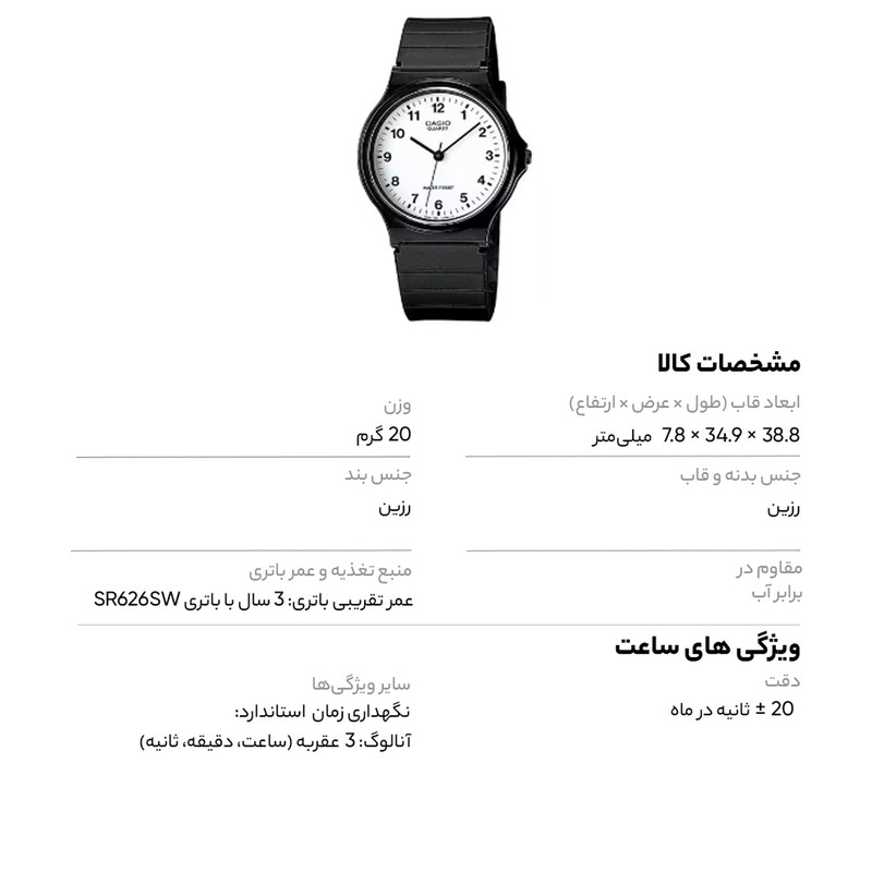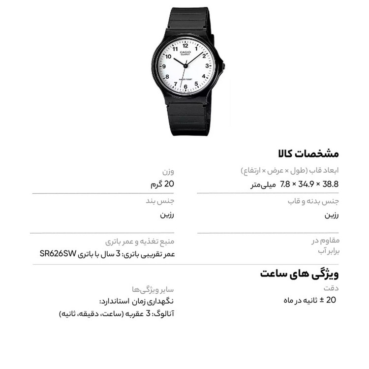 ساعت مچی عقربه ای مردانه کاسیو مدل MQ-24-7BLDF