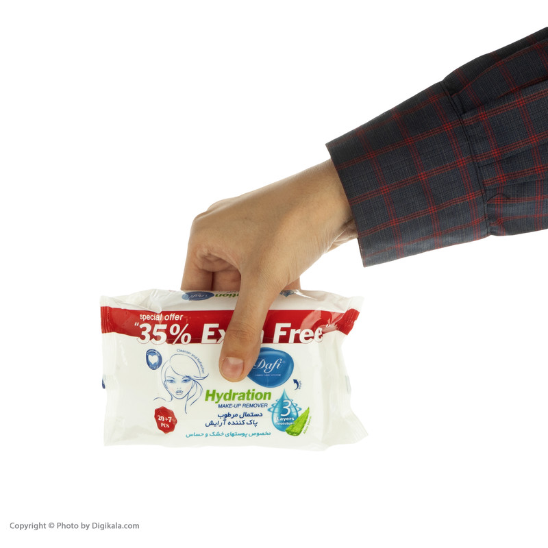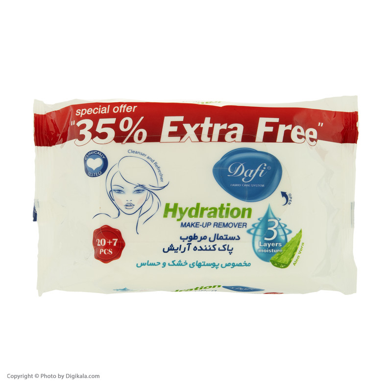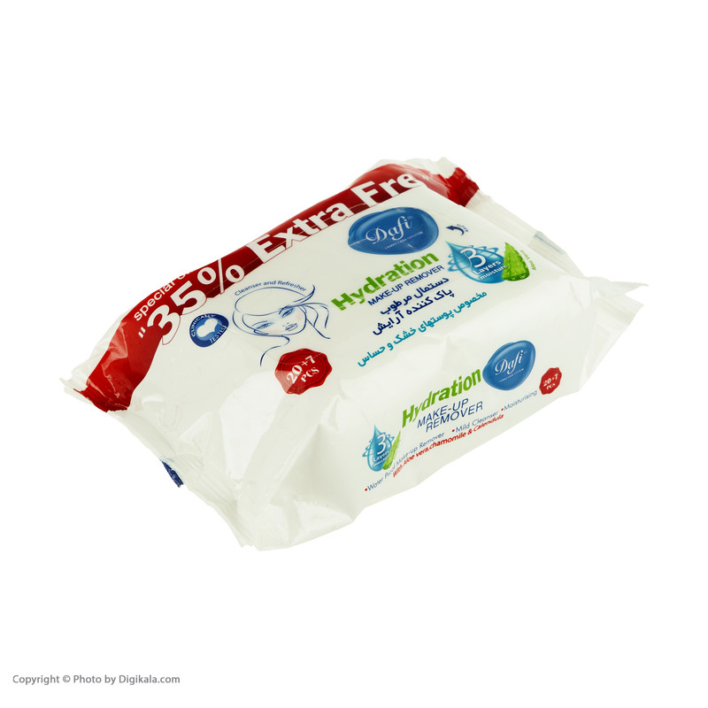 اگر از جمله خانمهایی هستید که به زیبایی و سلامت پوست خود اهمیت میدهند، بهتر است که بعد از یک روز طولانی و برای پاک کردن و تمیز کردن صورت خود از دستمال مرطوب آرایشی استفاده کنید. دستمال مرطوب پاک کننده آرایش دافی مدل آب رسان محصولی مناسب پوستهای خشک و حساس است. این محصول ضمن تمیزز کردن صورت، از پوست مراقبت کرده و به سلامت آن کمک میکند. بابونه، آلوئهورا و گل همیشه بهار (کالاندولا) از گیاهانی هستند که عصارهی آنها در این محصول بکار رفته و خواص درمانی آنها در ترکیب با هم محصولی با خاصیت ضد التهاب، ضد حساسیت و نرم کنندگی را بوجود آورده است. این گیاهان هر کدام به تنهایی دارای خواص ترمیم کنندگی و ترمیم پوست هستند که در این محصول طی ترکیبی مناسب و دقیق، به زیبایی پوست و جلوگیری از بروز آکنه و اگزما کمک زیادی میکنند. عصارهی خیار و لیموی بکار رفته در ترکیب این محصول، به آن خاصیت ضد آلرژی و ضد باکتری داده است. بابونه، لیمو وخیار پوست را ضد عفونی کرده و از ایجاد حساسیتهای پوستی و جوشهای سرسیاه جلوگیری میکنند. البته عدم وجود پارابن و صابون در این محصول نه تنها از ایجاد باکتریها و ضایعات پوستی جلوگیری میکند بلکه مانع خشک شدن آن هم میشود. آلوئهورا، خیار و دیگر عصارههای بکار رفته در این محصول خاصیت آبر رسانی به آن داده که به رطوبت پوست خشک کمک میکند.