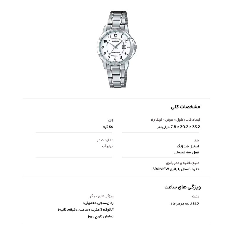 ساعت مچی عقربه ای زنانه کاسیو مدل LTP-V004D-7BUDF