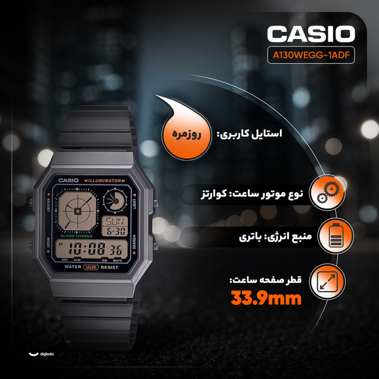 ساعت مچی دیجیتال کاسیو مدل A130WEGG-1ADF