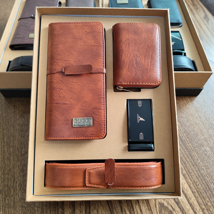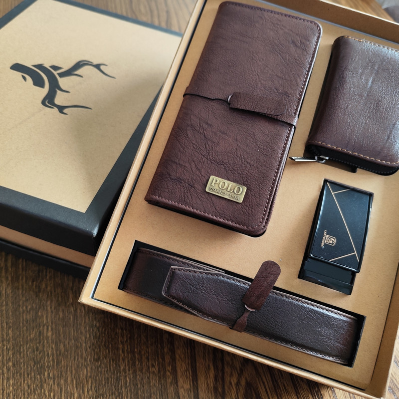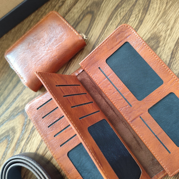 جزئیات: ست هدیه مردانه شامل کیف پول ، جاکارتی و کمربند ریلی با کیفیت به همراه باکس شکیل مناسب هدیه دادن