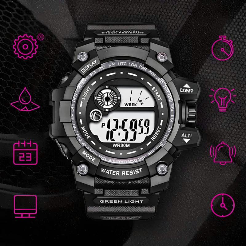 نمایش 24 ساعته , تاریخشمار , نور پسزمینه , تایمر , آلارم