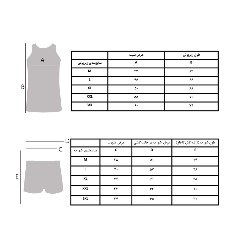 بدون آستین , رکابی , ست شورت و زیرپوش