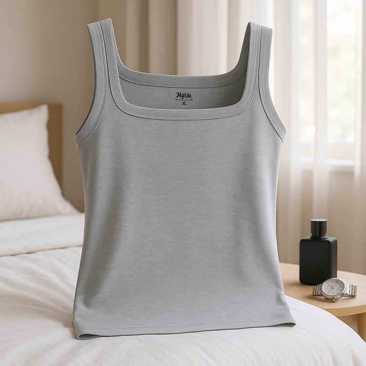زیرپوش رکابی یقه خشتی مردانه ماییلدا مدل پنبه ای ملانژ کد 4713