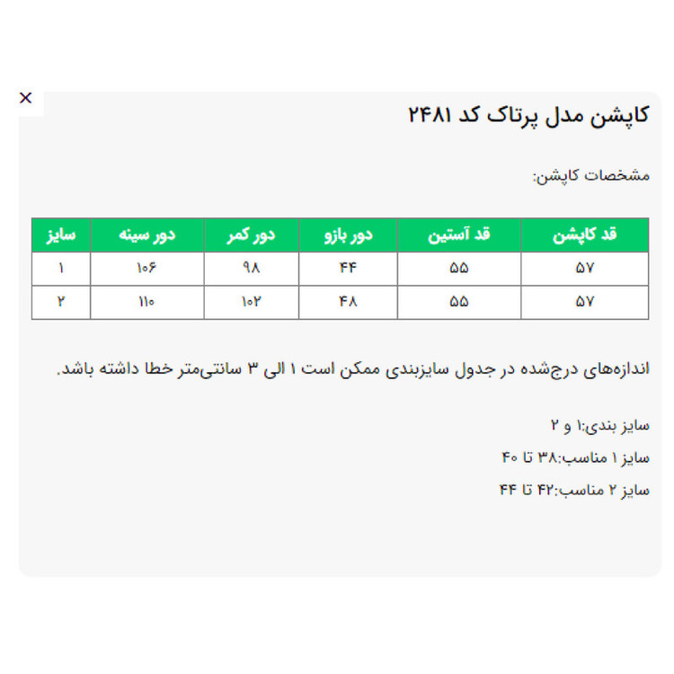 کاپشن زنانه السانا مدل پرتاک کد 2481