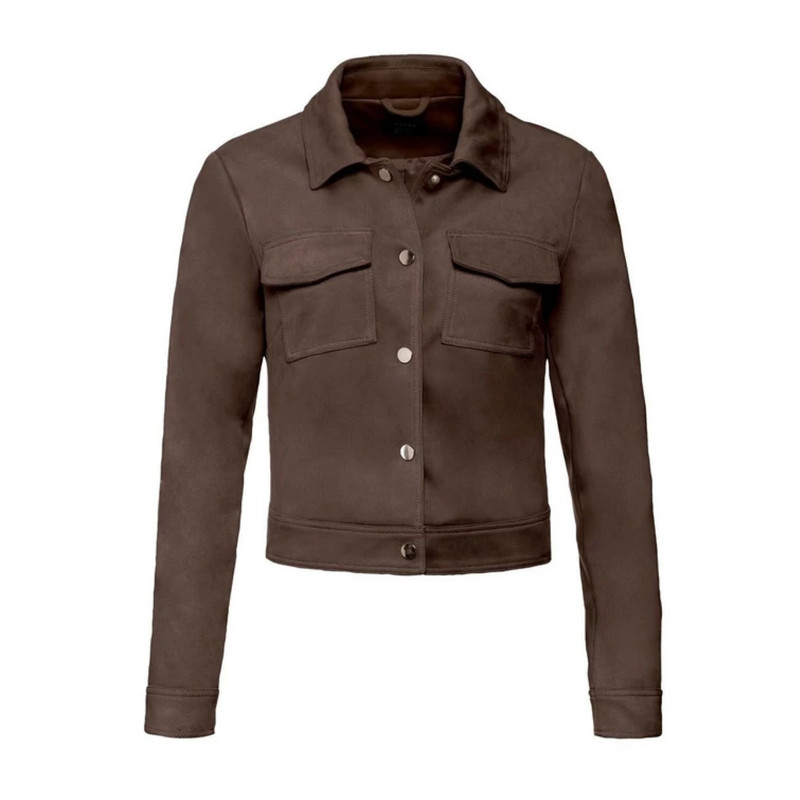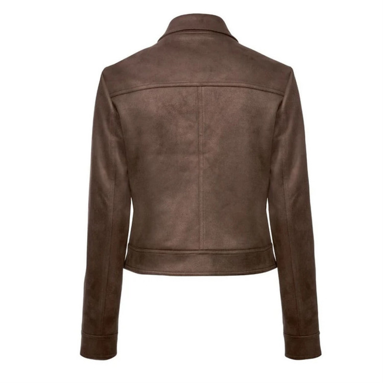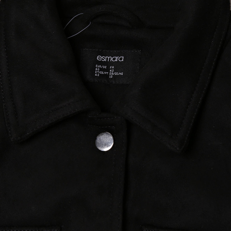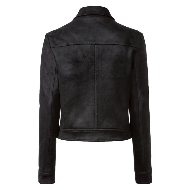 مدل : بایکرجکت با ظاهری شبیه چرم رنگ مشکی پر رنگ دارای دو جیب روی سینه