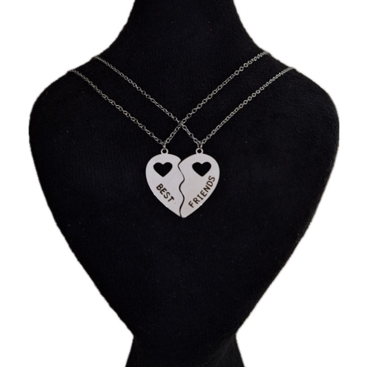 جنس گردنبند: استیل / جنس پلاک: استیل / ضد حساسیت / طرح پلاک: قلب مکمل best friends / رنگ ثابت / ابعاد پلاک: 3 cm