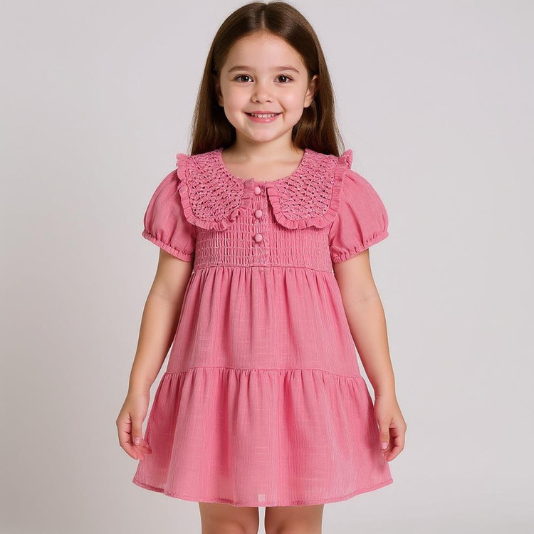 پیراهن آستین کوتاه یقه برگردان دخترانه مدل PK-PRM-00