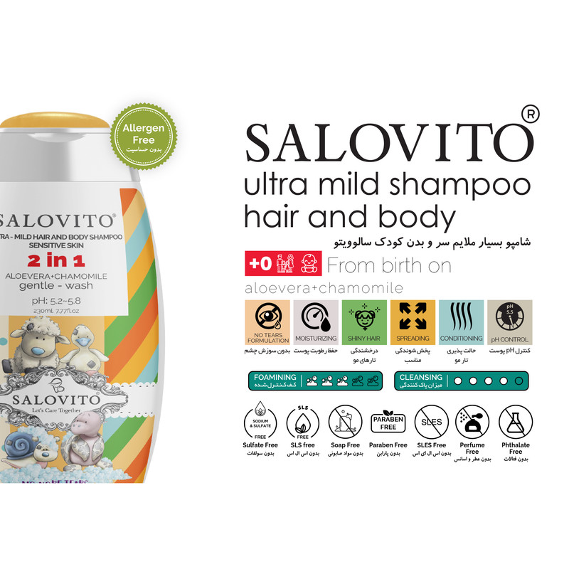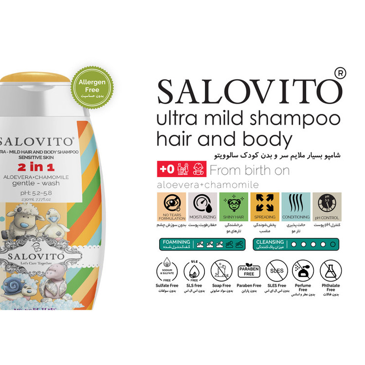 شامپو سر و بدن کودک سالوویتو مدل nosulfحجم 230 میلی لیتر مجموعه دو عددی