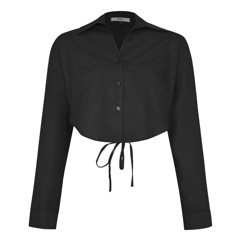 کراپ شومیز آستین بلند یقه برگردان زنانه نیزل مدل 1257