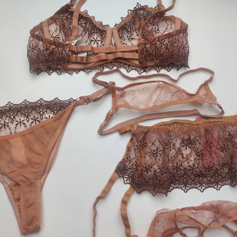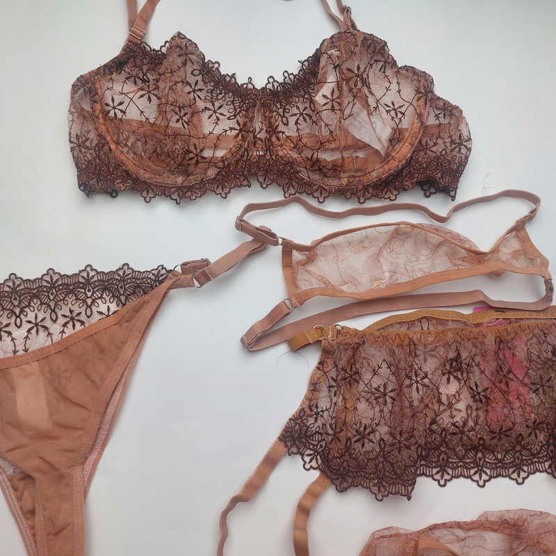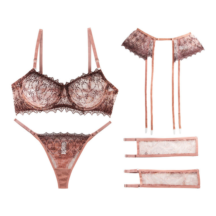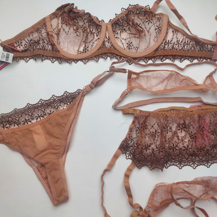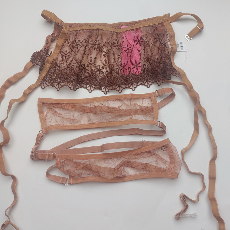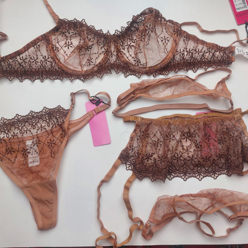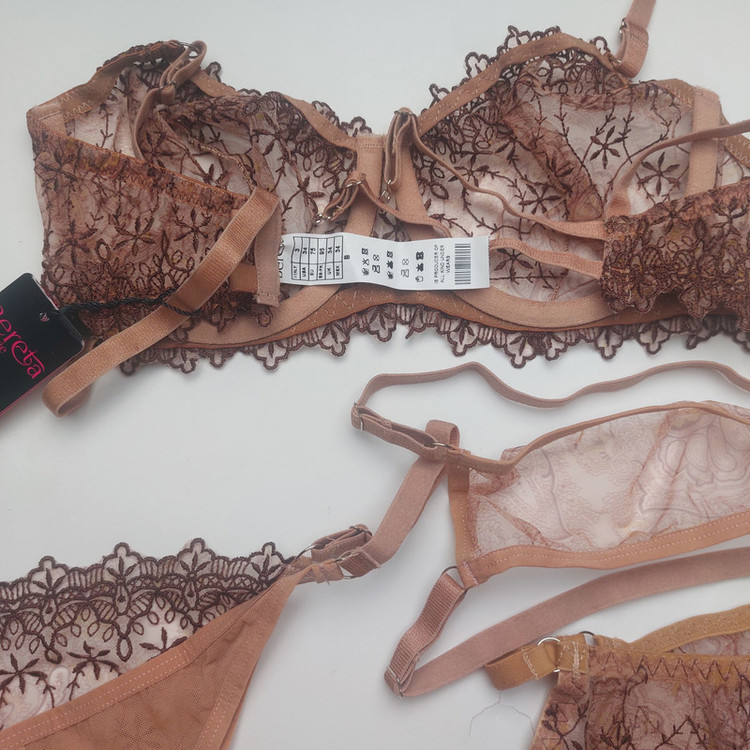 ست سوتین و شورت زنانه برتا مدل توری فنردار کد 4041BR به همراه بند و نگهدارنده جوراب